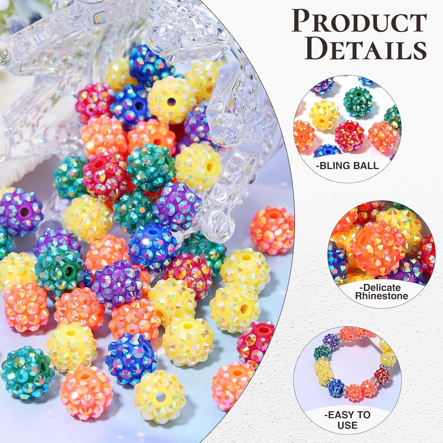 • UNIFORM RHINESTONE BALLS: Round clay beads are decorated with full Crystal rhinestone, and high-quality resin rhinestones are evenly distributed on the surface of the sphere, giving the overall visual layering of the beads. The beautifully shaped clay rhinestone beads are as colorful as disco balls, making the handmade jewelry richer.