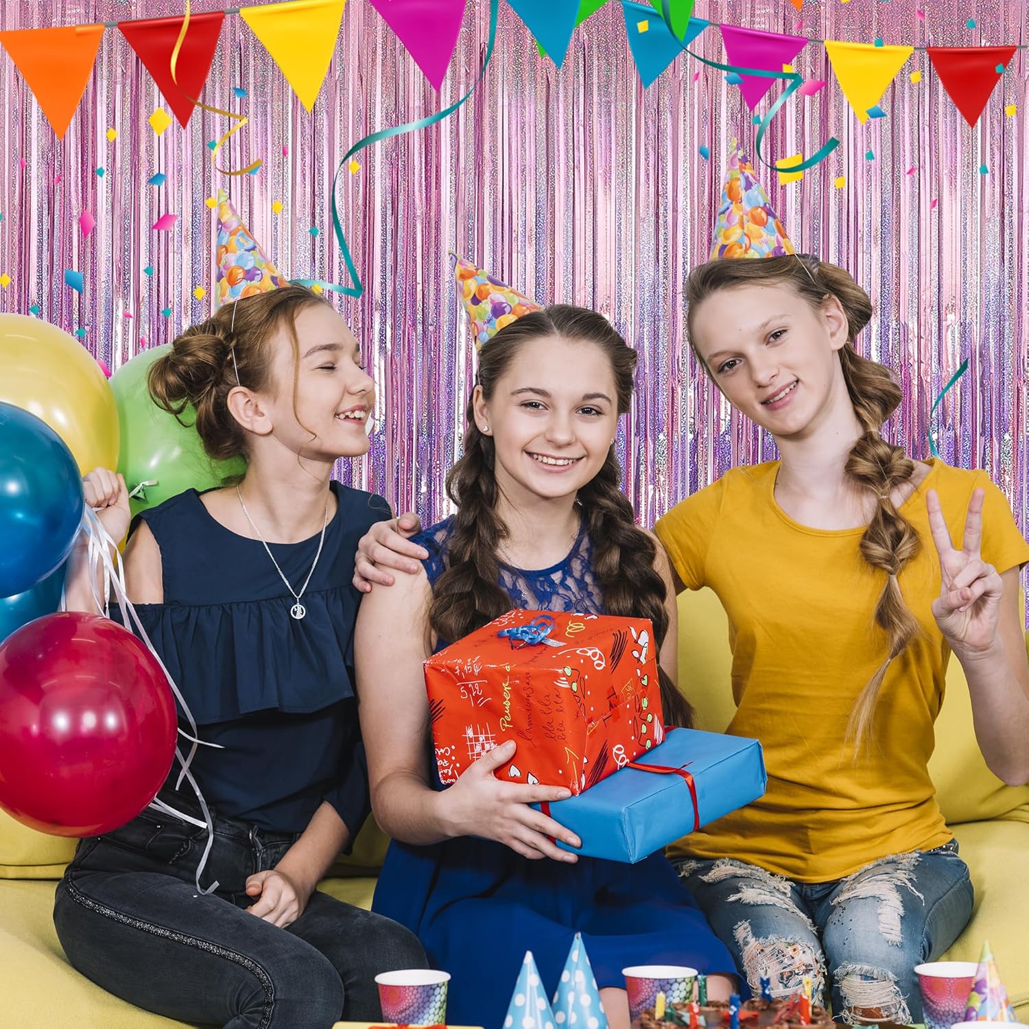 2 Pack Laser Pink Foil Fringe Curtains Streamers Party Decorations 3.3 x 8.2 ft, Tinsel Curtain Fringe Backdrop for Parties, Door Fringe Birthday Streamers, Barbie Backdrop Birthday Party Decorations