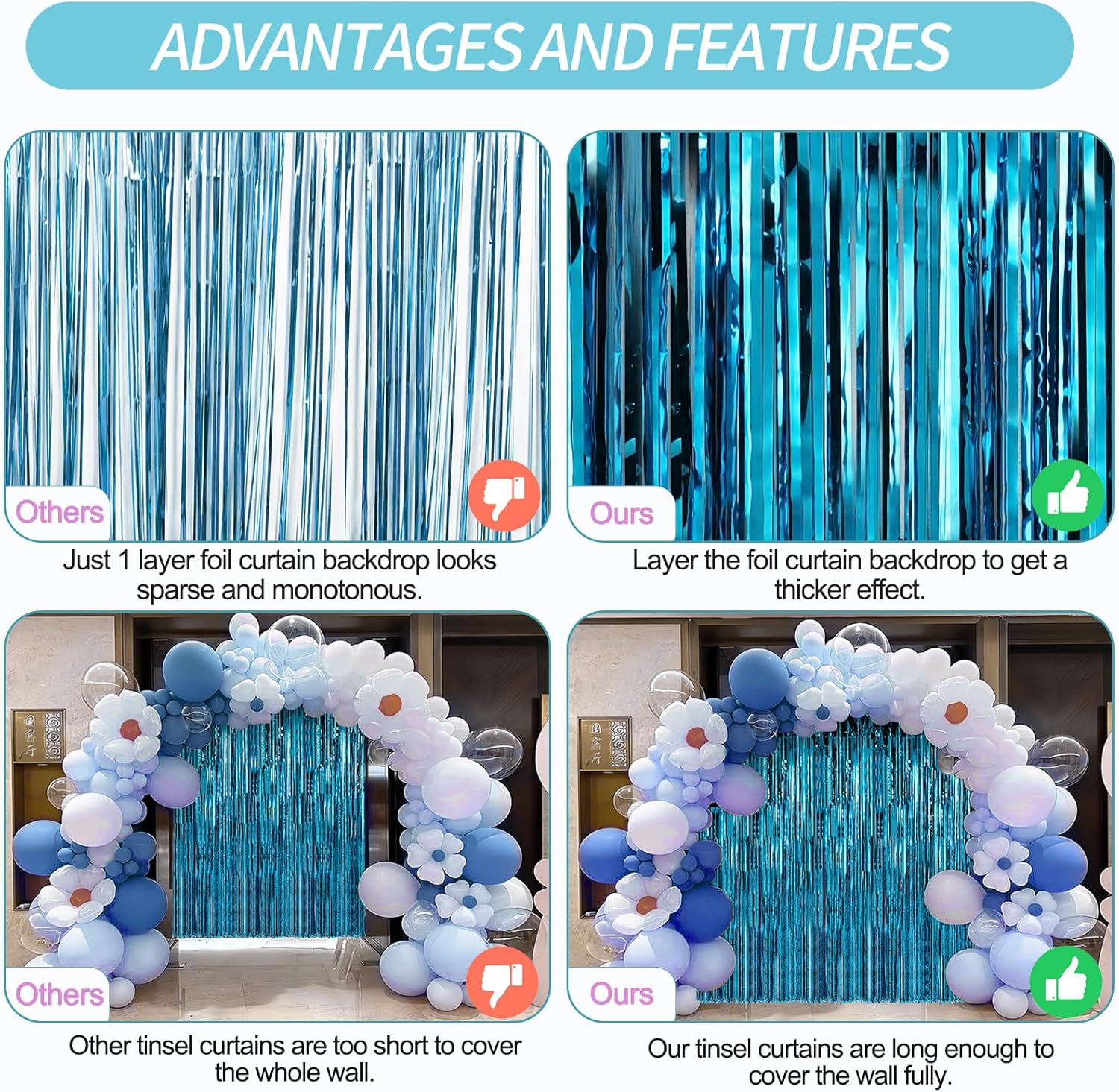 2 Pack Baby Blue Foil Fringe Curtains Door Streamers Party Decorations 3.3 x 8.2 ft, Tinsel Curtain Fringe Backdrop for Parties, Door Fringe Birthday Streamers, Photo Booth Backdrops, Party Decor