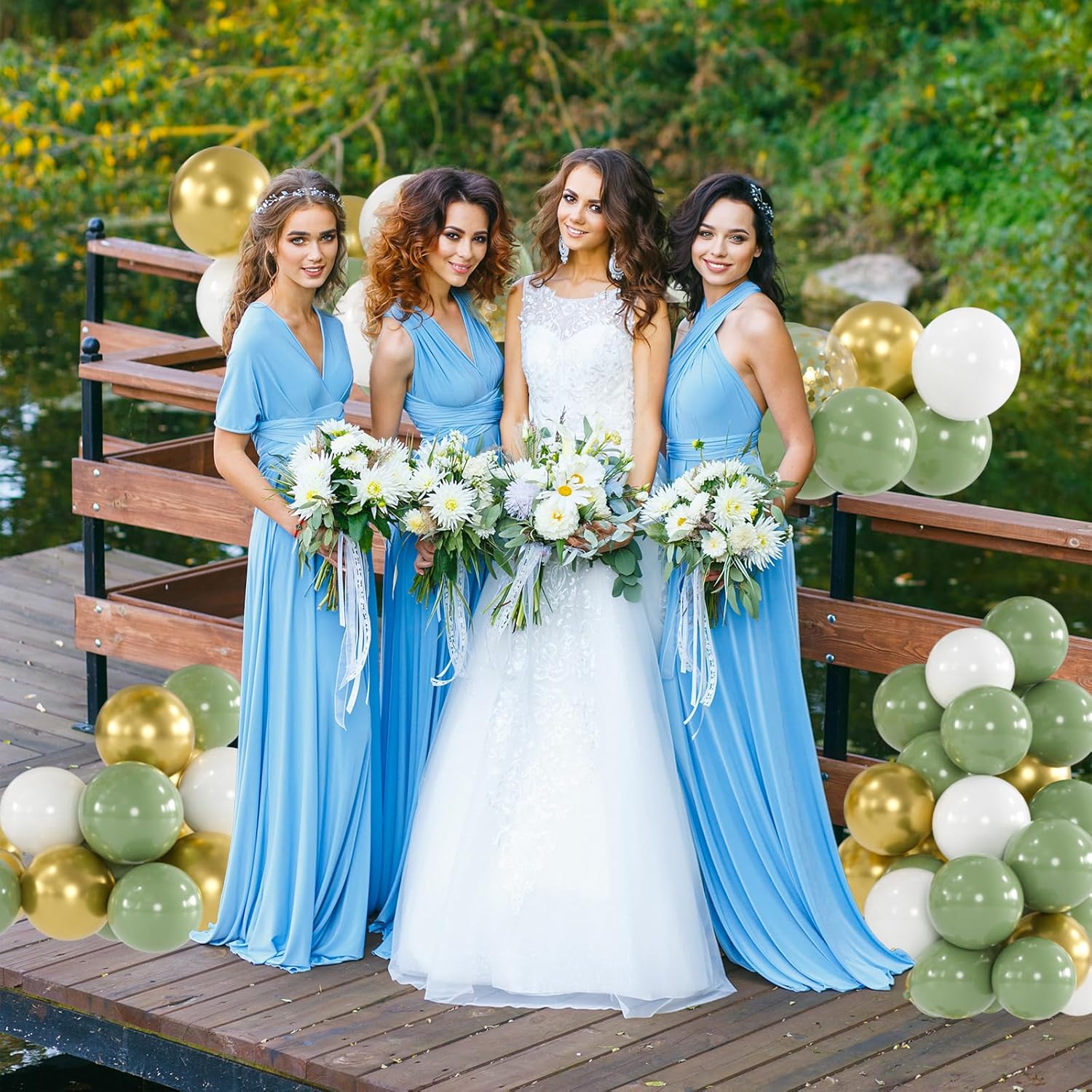 • Sage Green Gold White Balloons Kit : 100 premium 12" latex balloons ( 40 sage green balloons, 40 white balloons, 20 metallic gold balloons, 10 gold confetti balloons ) + 66ft ribbon. Sophisticated palette for designer-worthy installations!