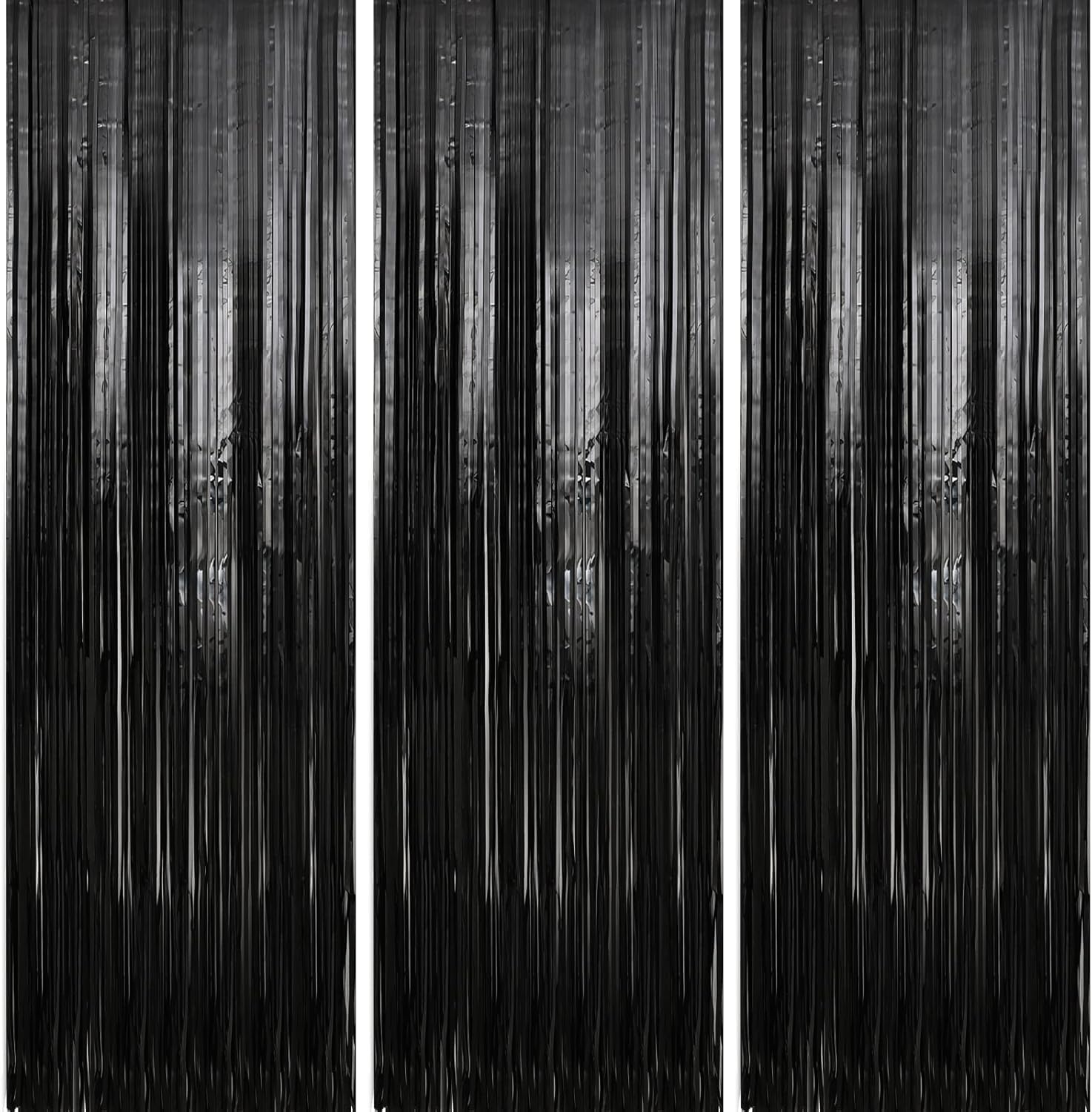 Crosize 7 Pack 3.3 x 9.9 ft Black Foil Fringe Backdrop Curtain, Streamer Backdrop Curtains, Streamers Birthday Party Decoration, Rose Gold Tinsel Curtain for Parties, Galentines Decor, Baby Shower