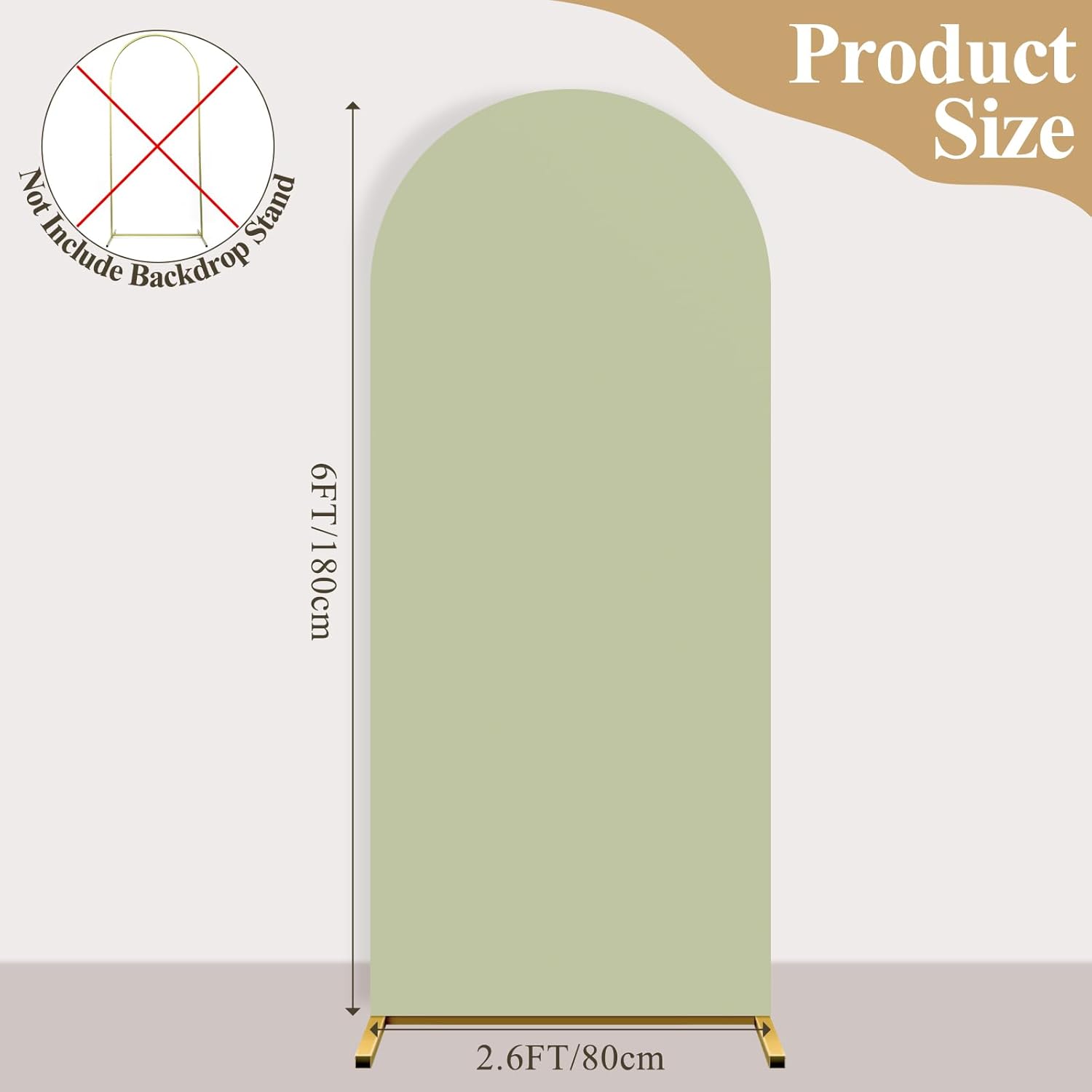 • 【Arch Covers Package】6FT arch cover (Arch stand not included), color: Sage Green. We have arch backdrop covers of different sizes --- size: 7.2 feet x 4 feet (H x W) / 6 feet x 2.6 feet (H x W). Please measure the size of the arch in your home before purchasing and choose the appropriate backdrop cover. If you have any questions, please feel free to contact us at any time.