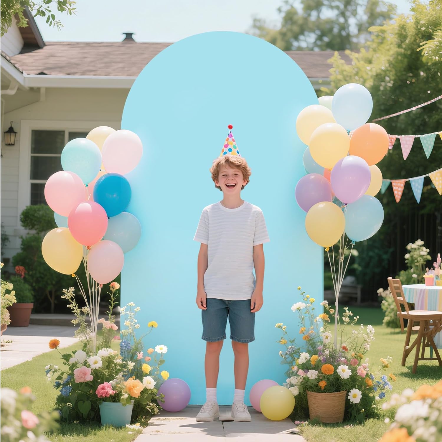 • 【Arch Covers Package】6FT arch cover (Arch stand not included), color: Light Blue. We have arch backdrop covers of different sizes --- size: 7.2 feet x 4 feet (H x W) / 6 feet x 2.6 feet (H x W). Please measure the size of the arch in your home before purchasing and choose the appropriate backdrop cover. If you have any questions, please feel free to contact us at any time.