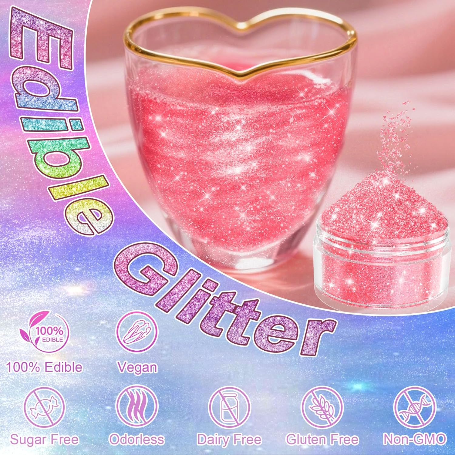• Versatile Usage for Various Treats: Our edible glitter for drinks is perfect for enhancing drinks, cocktails, cakes, cupcakes, candies, chocolates, and gummies. Add a touch of vibrant color and shimmering effects to your DIY decorations, turning ordinary treats into extraordinary delights with the edible glitter for cakes.