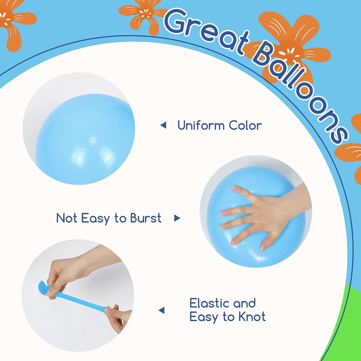 • Great Balloons: The blue and orange balloons are made of great latex, which is thick and not easy to pop. They can be filled with air or helium, lasting a long time when properly inflated. To ensure the good experience, inflate quickly with a balloon pump and avoid overinflating to maintain their shape