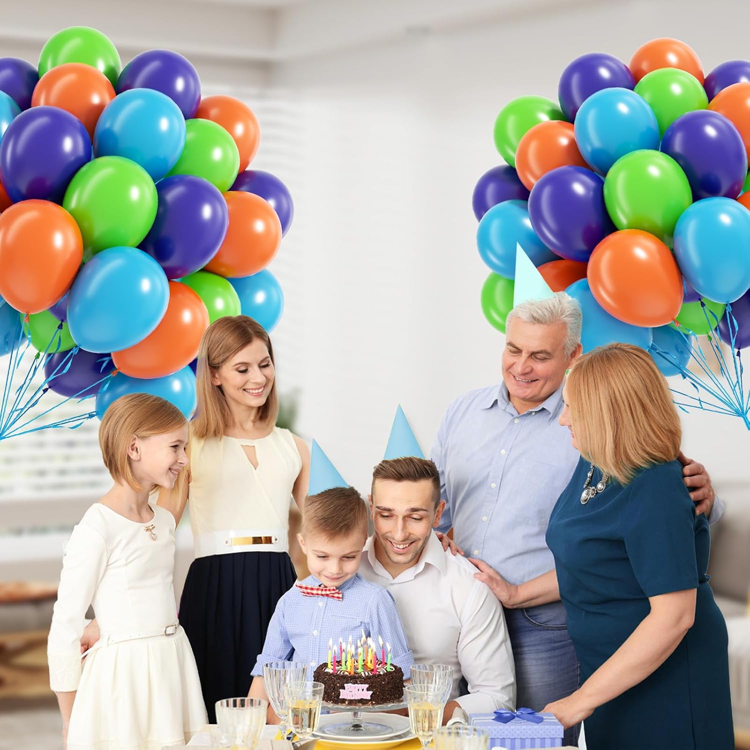 • What You Will Get: The package includes 12inch purple balloonsx15, 12inch light green balloonsx15, 12inch orange balloonsx15, 12inch blue balloonsx15, glue dotsx20, blue ribbonx1