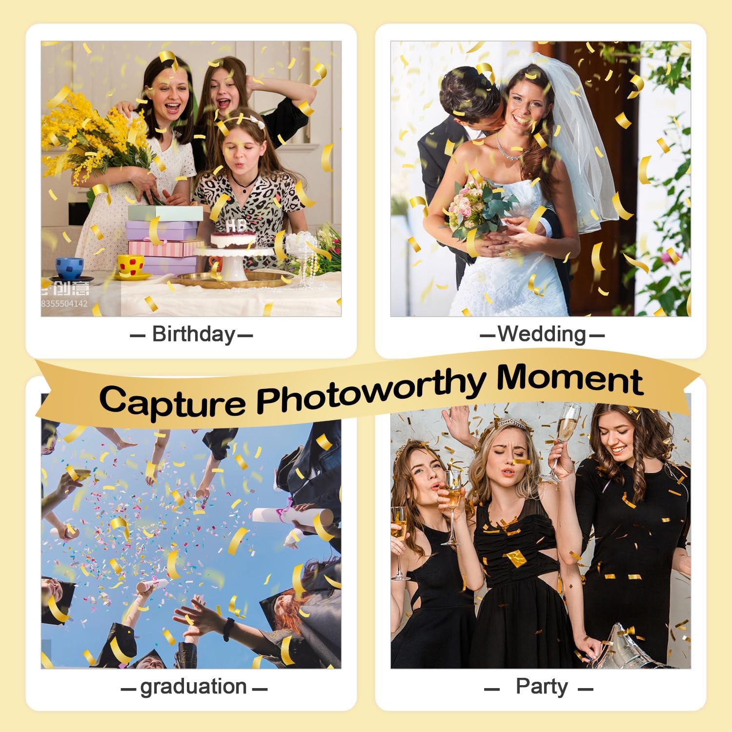 • Easy to use: these confetti cannons are powered by a compressed air unit and are simple to operate, just peel off the seal, hold the center and bottom, straighten your arm is the confetti cannon is perpendicular to the ground, rotate it in the direction of the arrow, and then release the dazzling golden confetti. Perfect for creating a festive atmosphere in seconds!