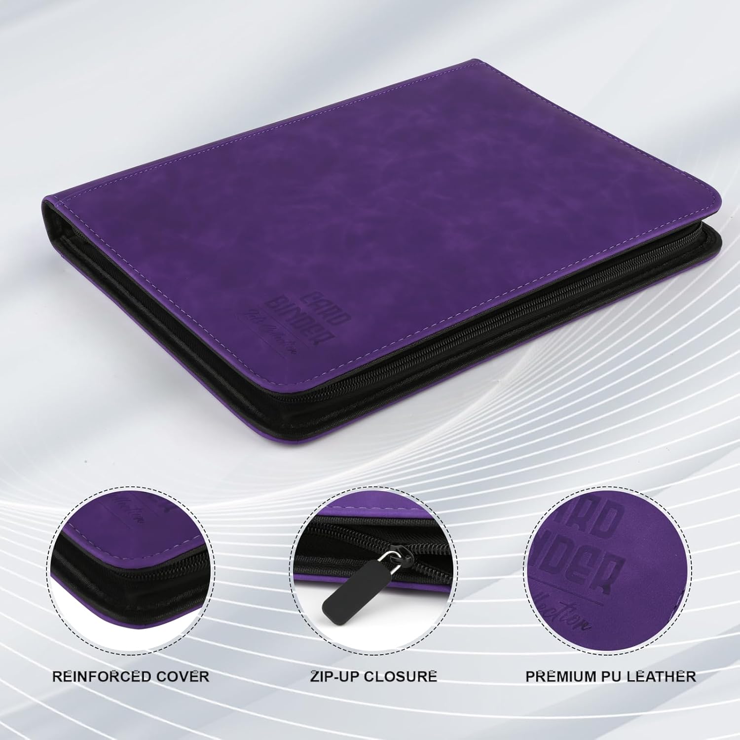 Toploader Binder with 9-Pocket Pages, Holds 288 "3×4" Rigid Toploader Hard Cases, Card Holder for Collectible Cards or Sports Cards, Durable Sleeves for Storage & Display (Purple)