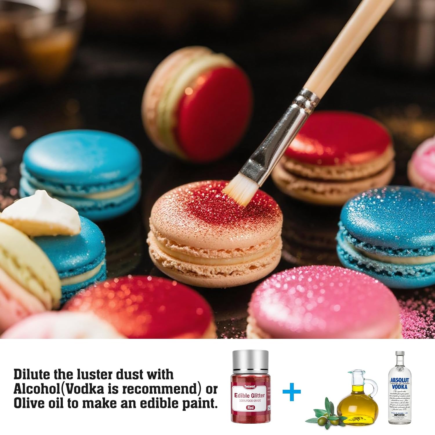 • 【Long Shelf Life & Travel-Friendly】: Each bottle provides enough luster dust for dozens of desserts! Our airtight packaging maintains freshness for up to 3 years. Twisweet edible luster dust is compact and lightweight, perfect for on-the-go decorating. Ideal for baking classes, picnics, or party desserts. Its travel-friendly size fits easily in aprons, pouches, or baking kits!