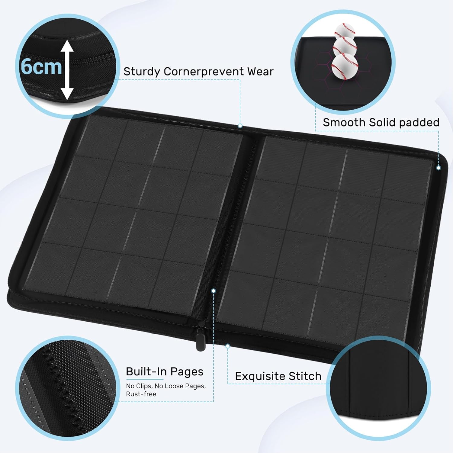 • Side Loading & Ultra-Clear Pages: Featuring archival-grade acid-free & non-PVC materials, this side-loading card binder prevents fading and card stickiness while its ultra-clear anti-scratch sleeves showcase holofoil details and securely lock cards in place—ideal for prolonged storage and collection display.