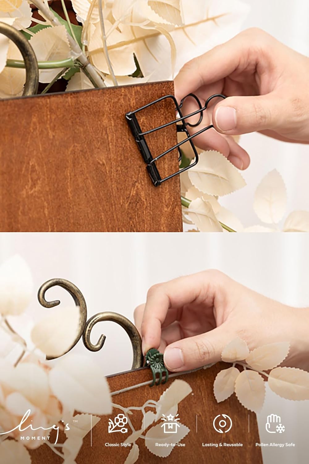 • EASY TO USE: Fasten the wedding seating chart swag to the edge of the easel stand for sign with clips, which won't damage fabrics and flowers and is easy to remove off. Comes with four small claw clips that can be used to clamp the leaf vine branches on the stand, like a vine growing on an easel.