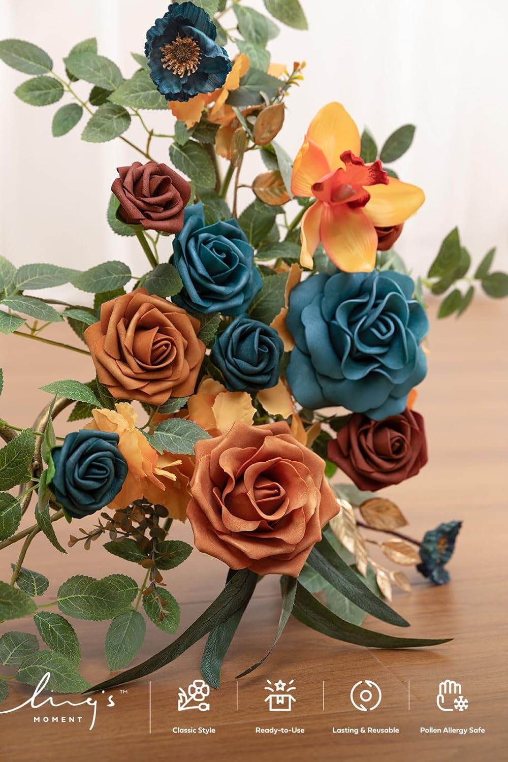 Ling's moment 2pcs Wedding Flowers Garland Artificial Floral Swag Arch Decorations Greenery Arrangements Orange & Teal Ceremony Reception Garden Easel Wall Entryway Outdoor Board(NOT Include Sign)