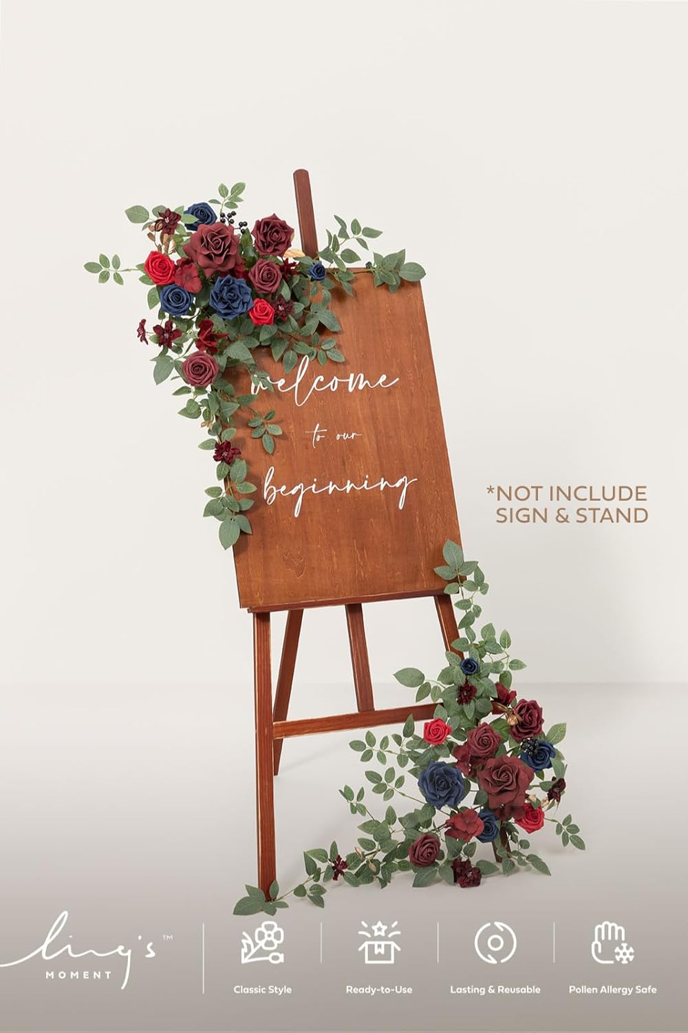 Ling's moment 2pcs Wedding Flowers Garland Artificial Floral Swag Arch Decorations Greenery Arrangements Burgundy & Navy Blue Ceremony Reception Garden Easel Wall Entryway Outdoor NOT Include Sign