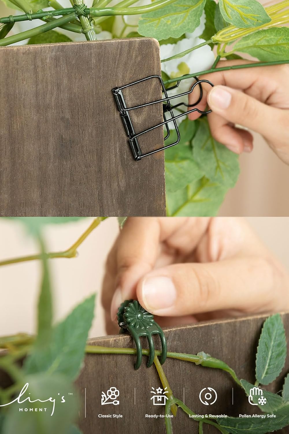 • EASY TO USE: Fasten the wedding seating chart swag to the edge of the easel stand for sign with clips, which won't damage fabrics and flowers and is easy to remove off. Comes with four small claw clips that can be used to clamp the leaf vine branches on the stand, like a vine growing on an easel.
