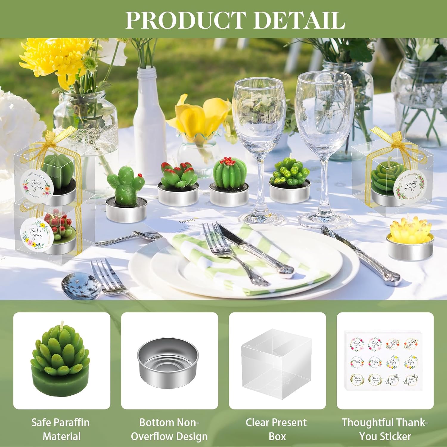 AZEAM 48 Pcs Succulent Candles Party Favors, Bulk Cactus Table Decor for Guests, Mini Tiny Handmade Plant Tealights Candle Decoration Set for Baby Shower Prizes Game Bridal Wedding Home Birthday