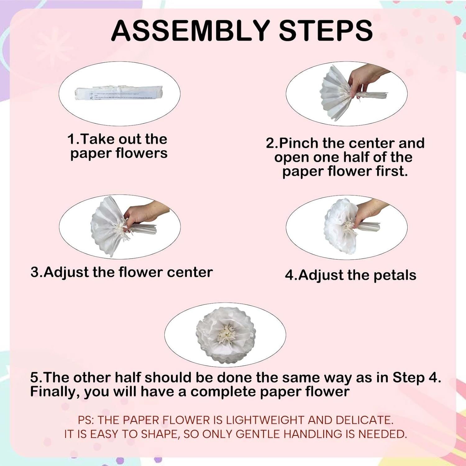 • PREMIUM MATERIAL & SAFE - High-quality tissue paper, Made from soft, fade-resistant crepe paper for a realistic fluffy texture and vibrant colors, Eco-friendly, Non-toxic, Safe for kids and pets, perfect for nursery decor or baby showers.