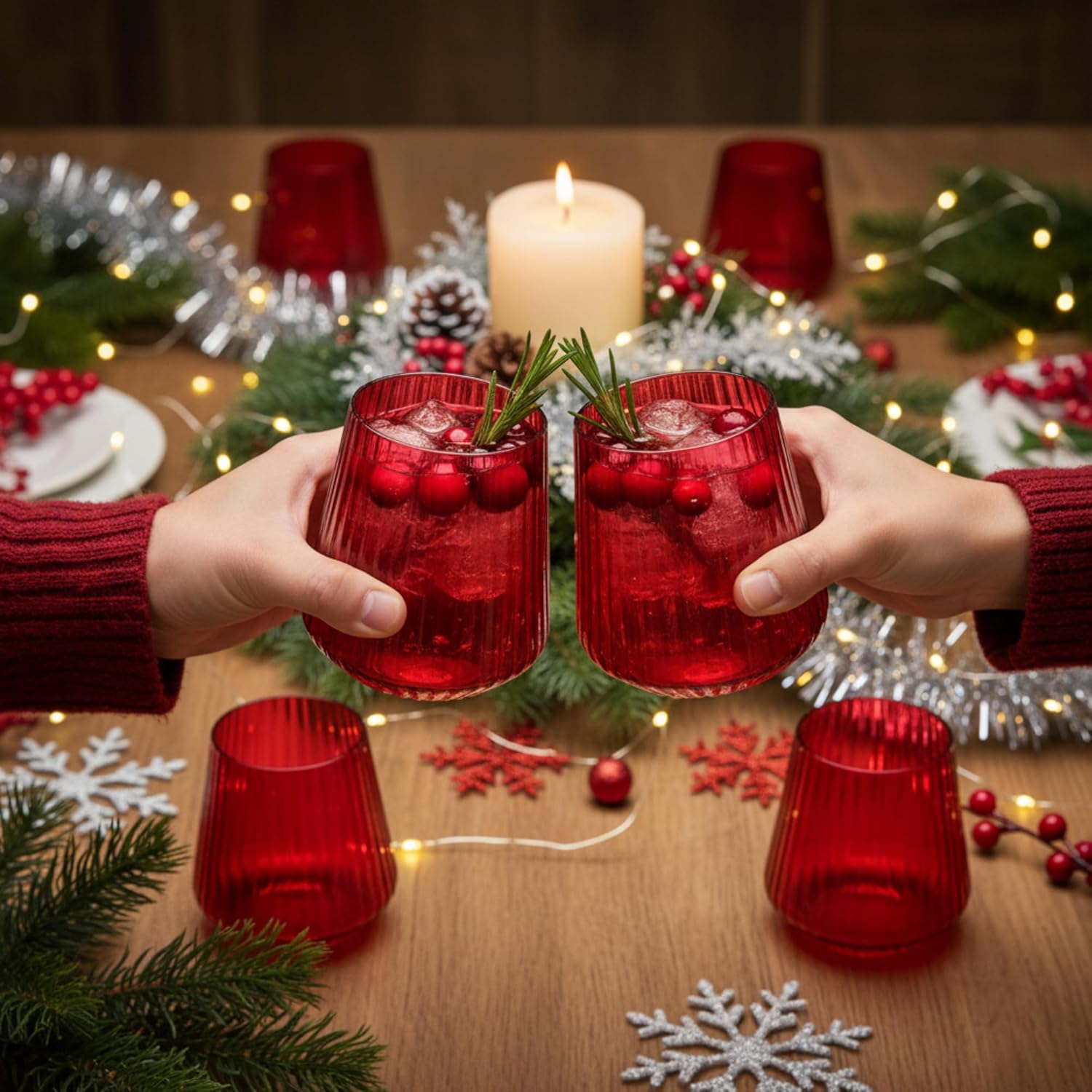 Suclain Plastic Wine Glasses Ribbed Stemless Wine Glasses 14oz Vertical Design Unbreakable Cups for Outdoor Indoor Vintage Elegant Champagne Whiskey Cups for Party Wedding(Red,50 Pcs)