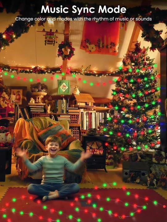 • Sync with Music: You can choose the color, brightness, mode or sensitivity of these led color changing string lights according to your need, our smart string lights change synchronously with the rhythm of the music. Whether you are having a party with friends or spending holidays at home with your family, these globe string lights indoor can be paired to create lively atmosphere.