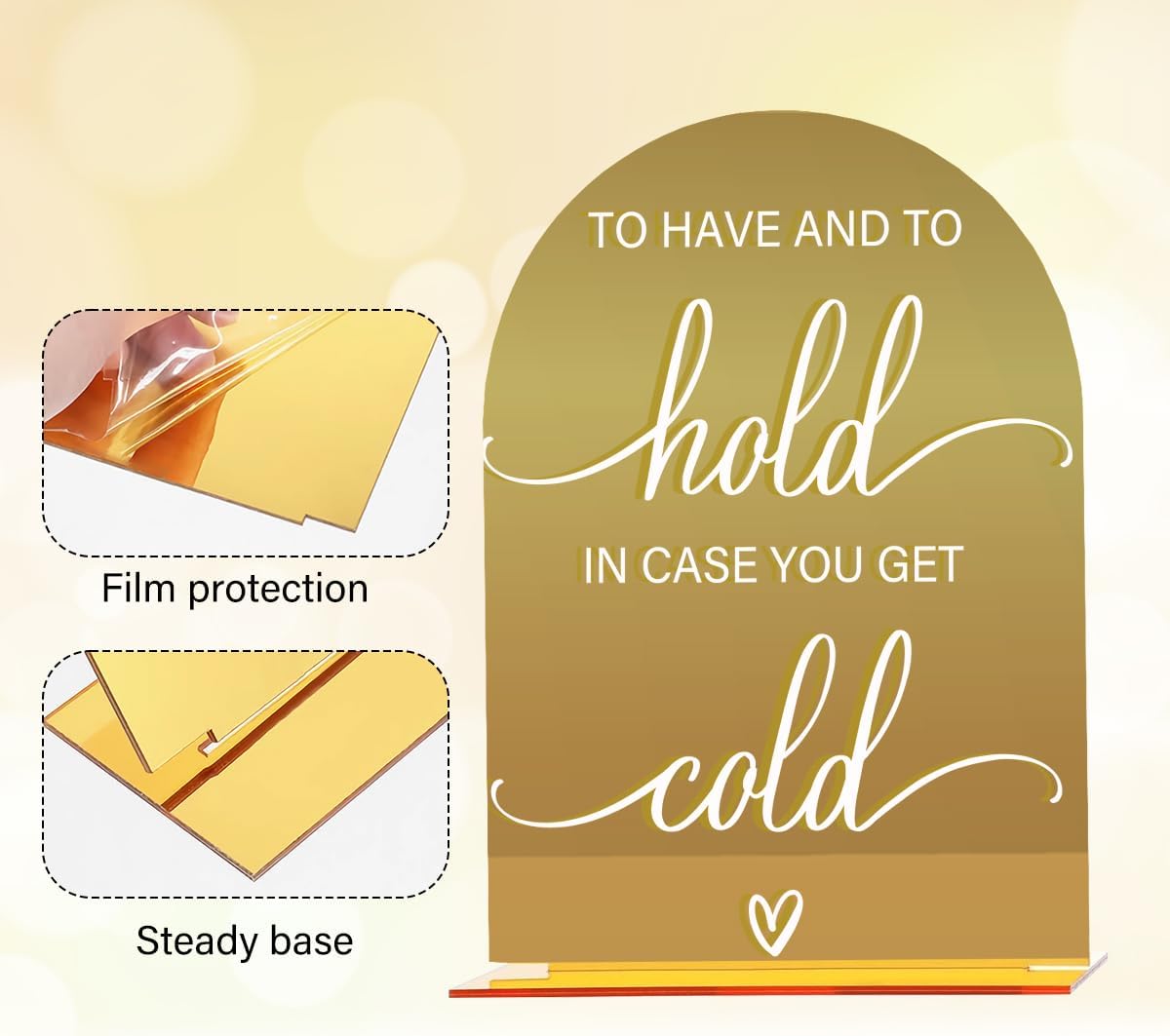 Acrylic Wedding Sign, Bridal Shower Decorations, To Have And To Hold Sign for Ceremony, Modern Font Table Signs, Gold Mirror Arched Acrylic Tabletop Signs for Wedding Reception and Event Party