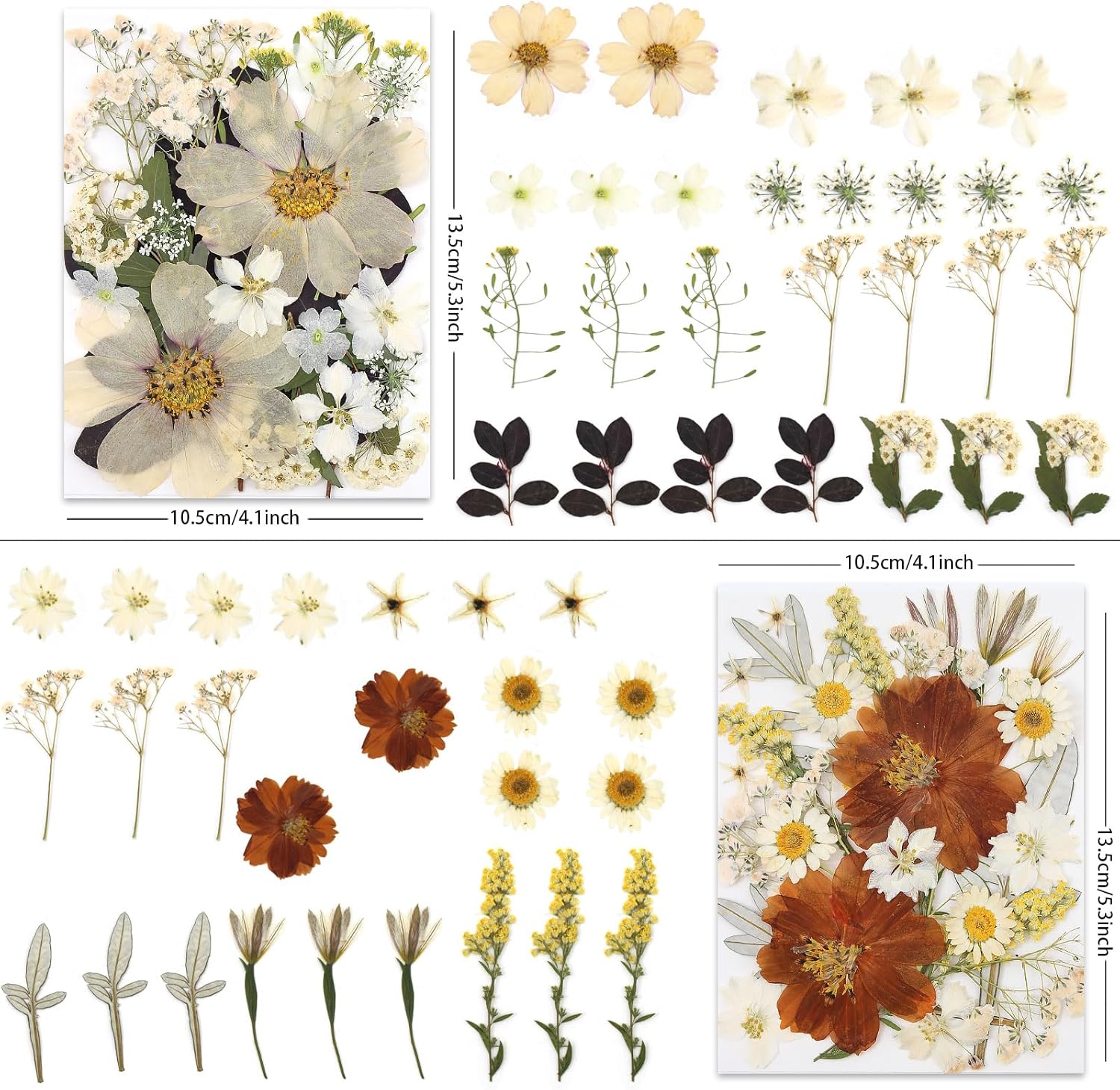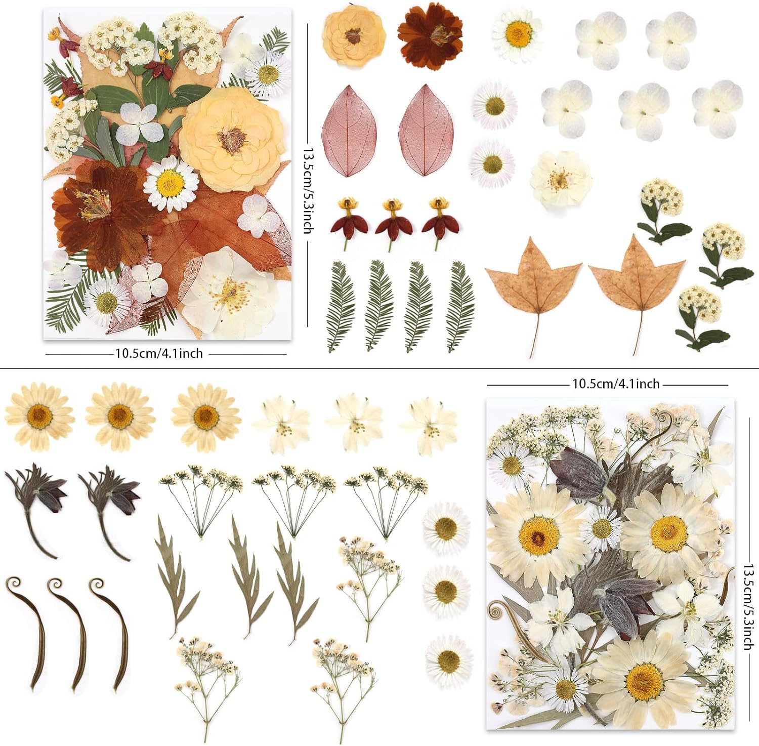 • Large Pressed Floral Layers: Effortlessly layer large pressed flowers with lace, vintage paper/wax seals for retro vibe. Store in dark dry spots; vacuum packs preserve tones long, ideal for craft flowers & vintage crafts