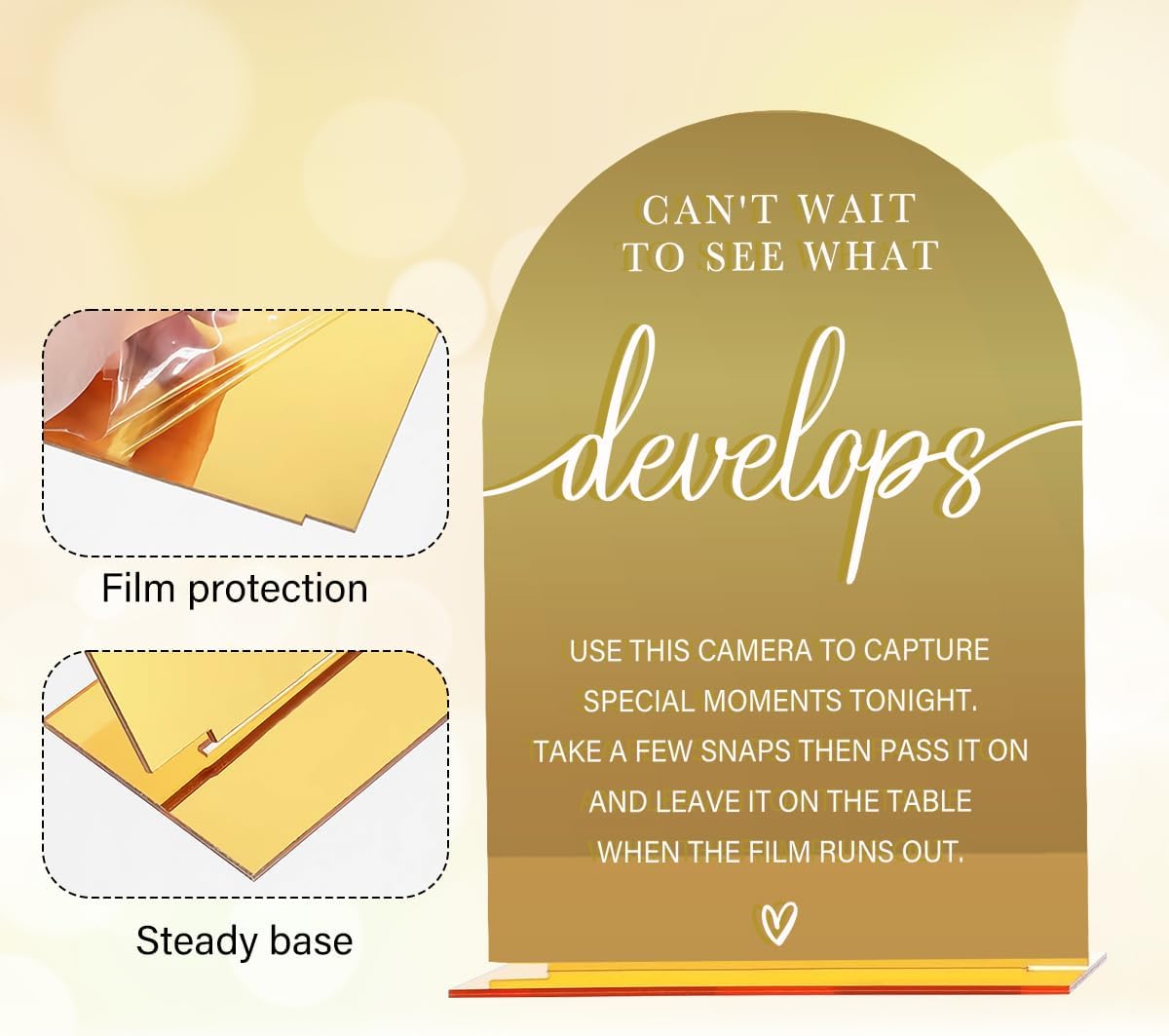 • 【Suitable Size】: Each wedding sign comes with a small acrylic base; the sign measures about 5 x 7 inches, and the acrylic base is about 4.3 x 1.2 inches. Each mirrored arch acrylic wedding sign has a protective film to prevent scratches, which should be torn off when ready to use.