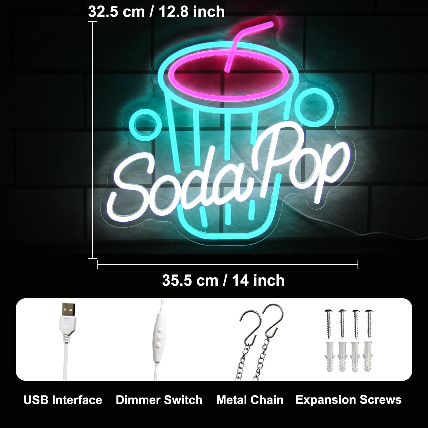 • 【Soda Pop Neon Light】If you are running a restaurant/bar/drinks store/dessert shop, this soda pop LED sign is exactly what you need. Lighting drink neon sign not only attracts guests, but also adds a lively atmosphere to your room. Say goodbye to traditional billboards!
