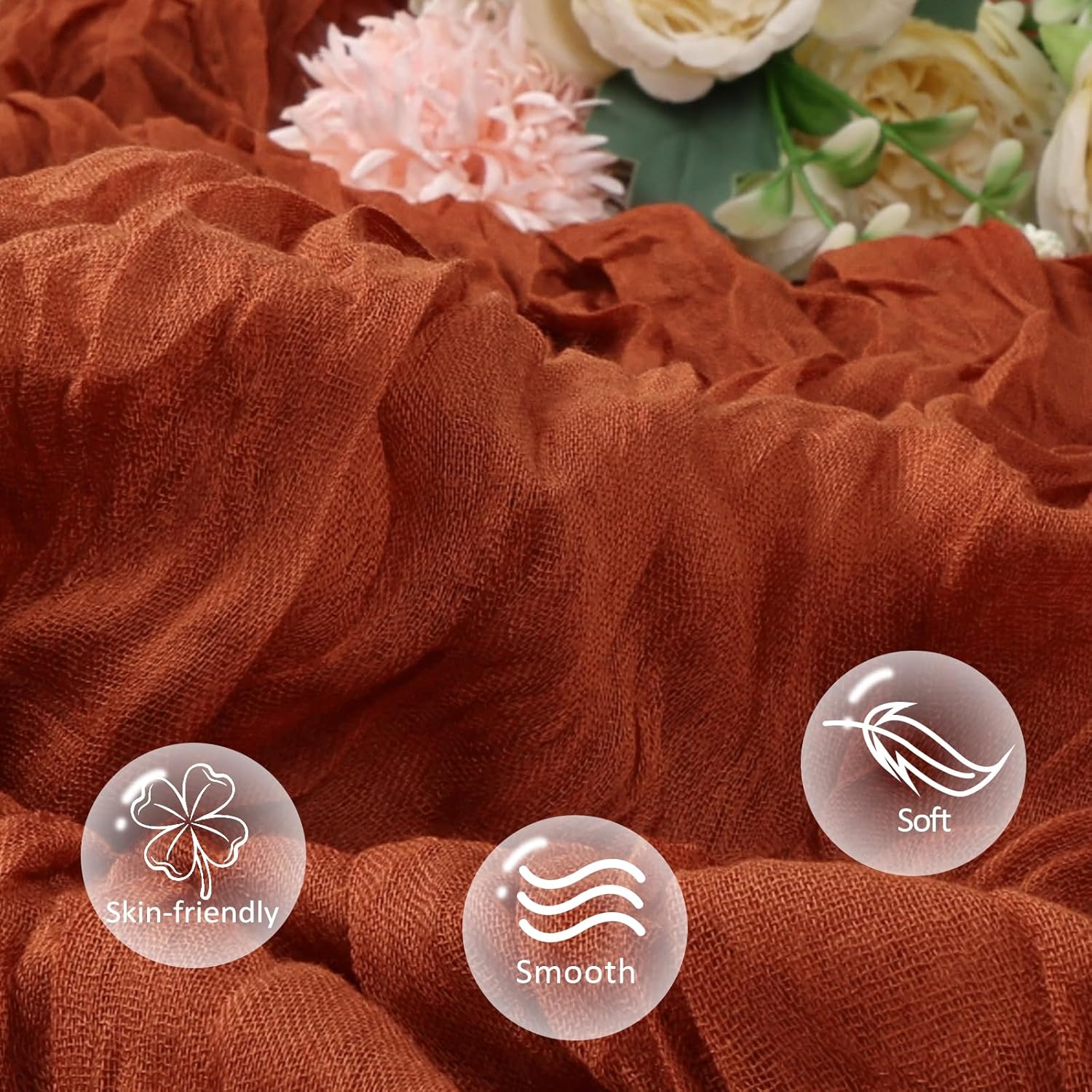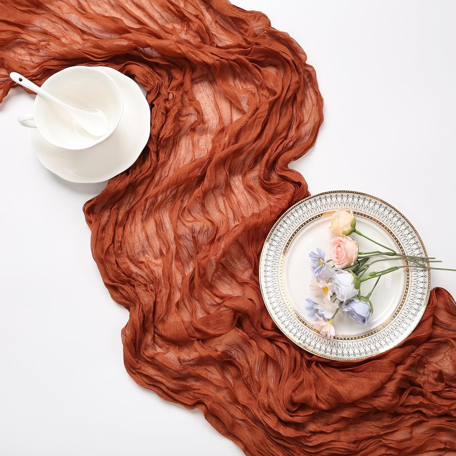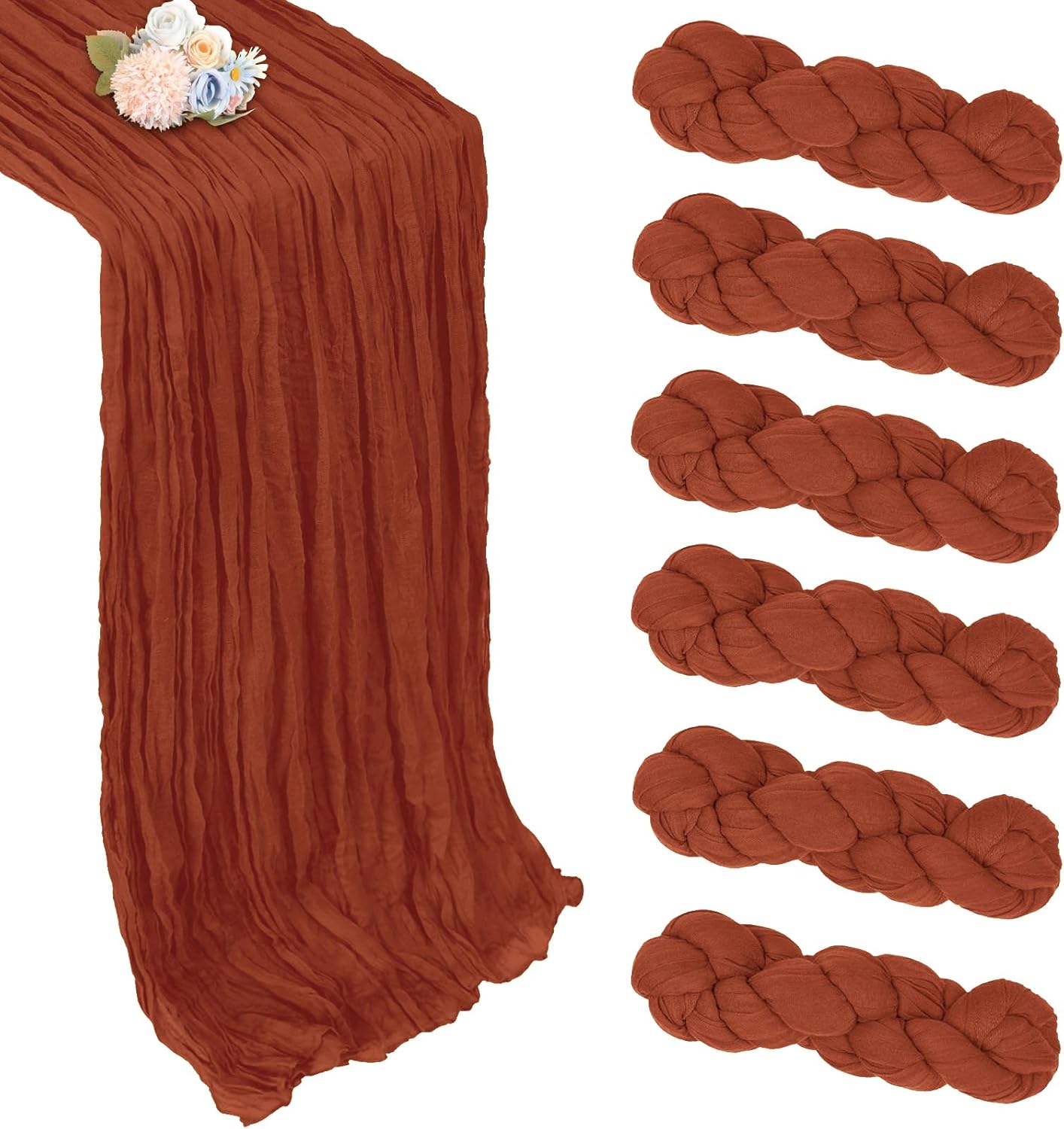 6 Pack Fall Thanksgiving Table Runner Terracotta Cheesecloth 10ft Boho Gauze Fabric Cheese Cloth Burnt Orange Table Runner 35 x 120 Inch Rustic Sheer for Wedding Décor Party Centerpiece Decoration