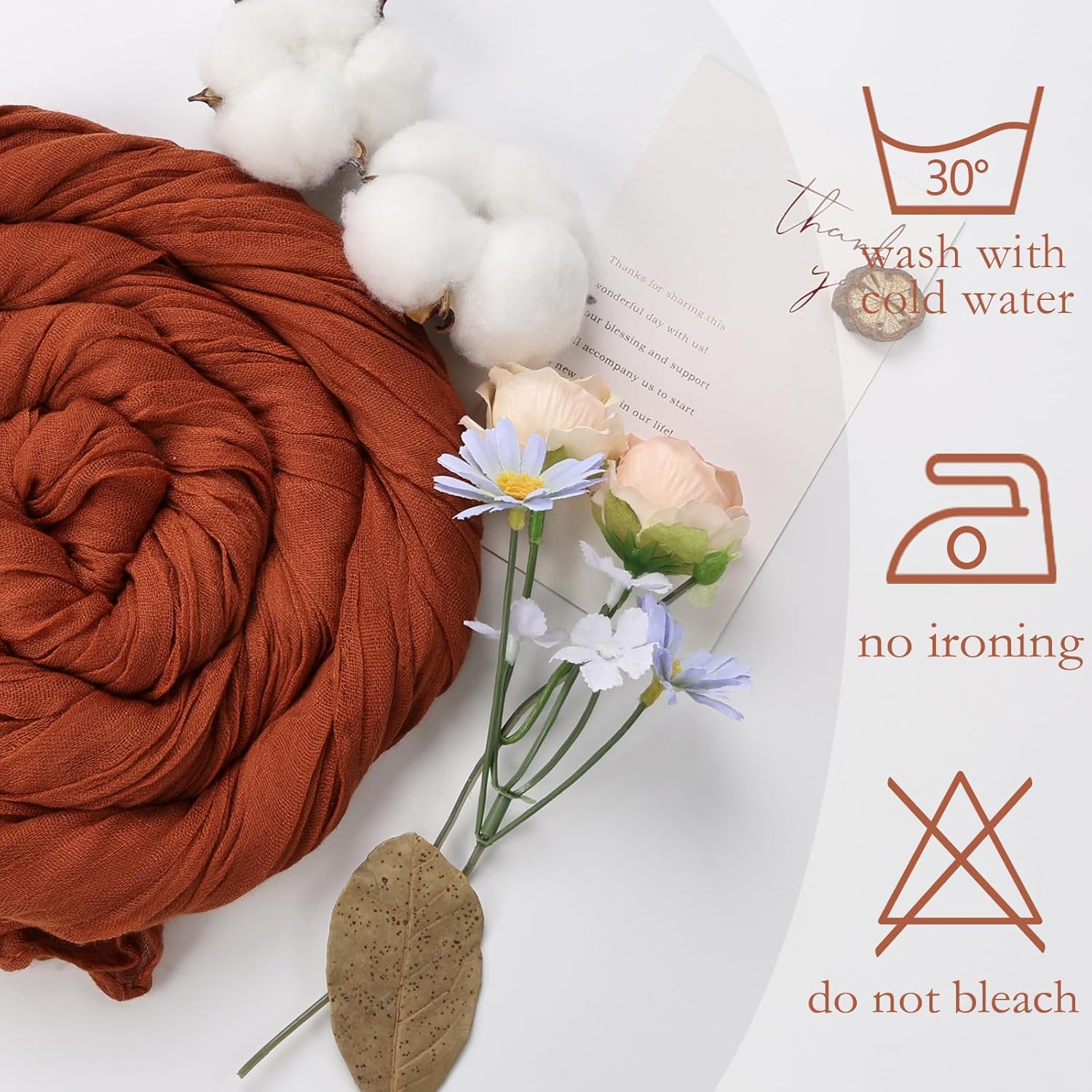 • 【Care Instructions】For The Vintage Terracotta Cheese Cloth Table Runner, It Is Recommended That You Put Them In A Laundry Bag For Machine Washing Or Hand Wash With Cold Water. To Preserve The Wrinkled Texture Of The Gauze Table Runners, Please Do Not Iron Or Bleach Table Runners. Also, Avoid Direct Exposure To The Sun To Prevent Fading, So That They Can Be Used For A Long Time.