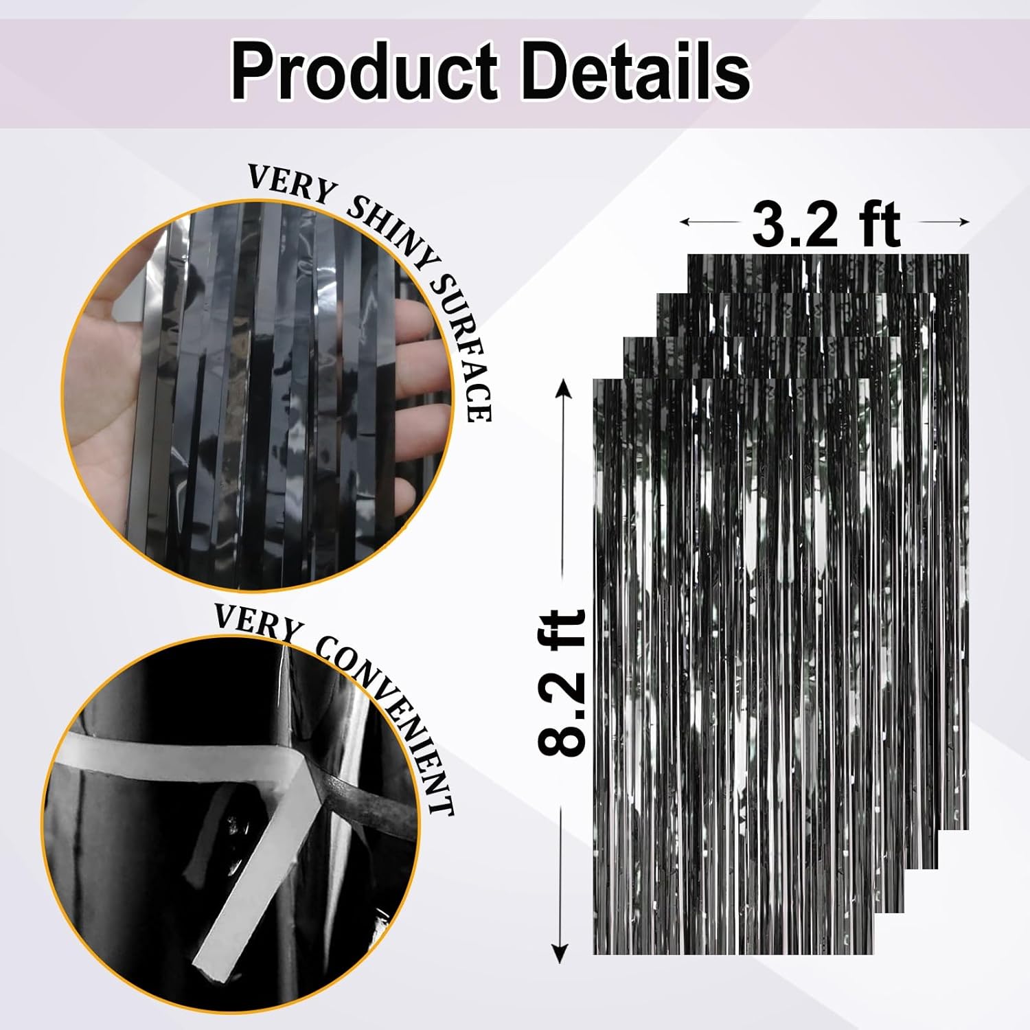 • đŸ–€ă€BLACK TINSEL BACKDROP】Value pack of 4, each measuring 3.2ft x 8.2ft (1m x 2.5m), Perfect Size for creating backdrops or photo booths.