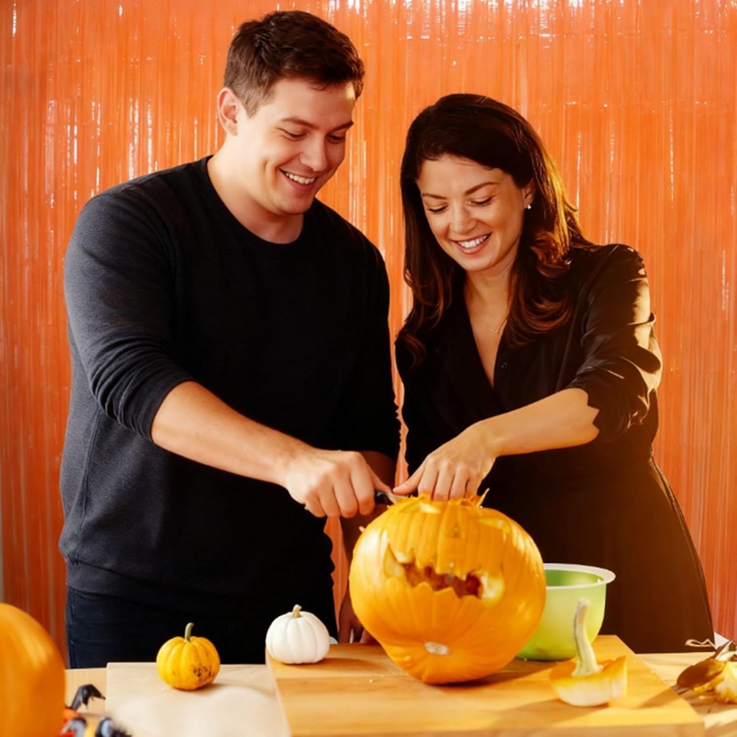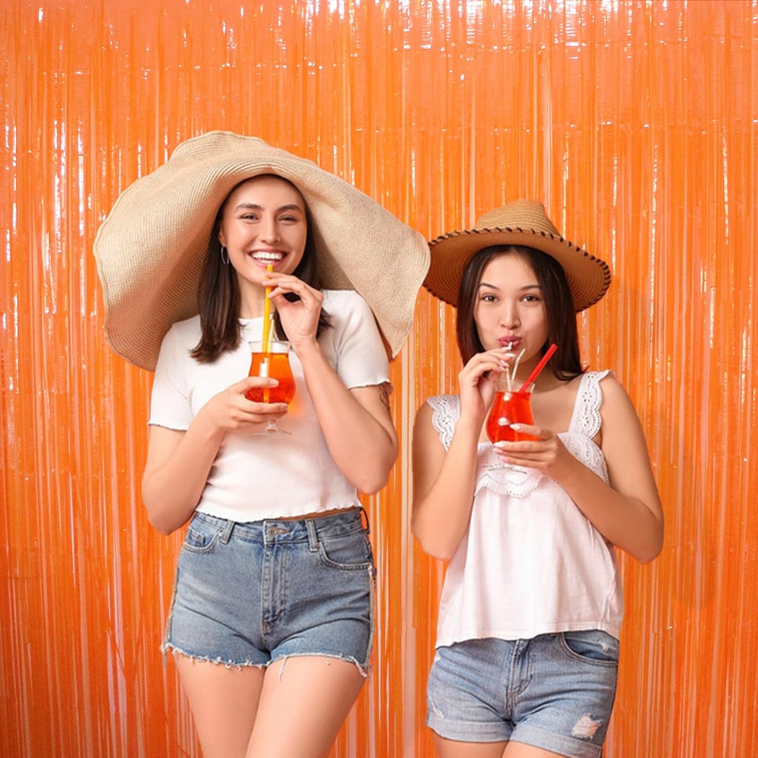 • 【ORANGE TINSEL BACKDROP】Value pack of 4, each measuring 3.2ft x 8.2ft (1m x 2.5m), Perfect Size for creating backdrops or photo booths.