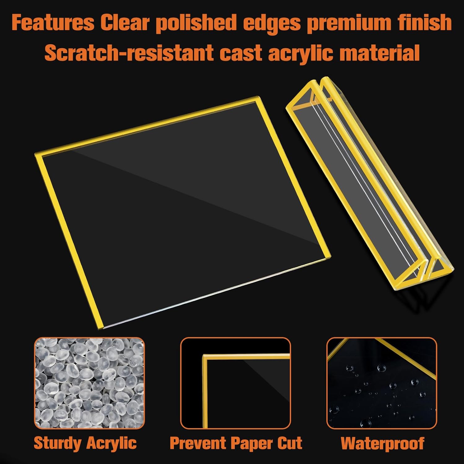 • High Quality Acrylic: Acrylic sign holders are made from premium acrylic, these gold sign holders offer high transparency for a clear display. They are durable, easy to clean, reusable, and resistant to yellowing.