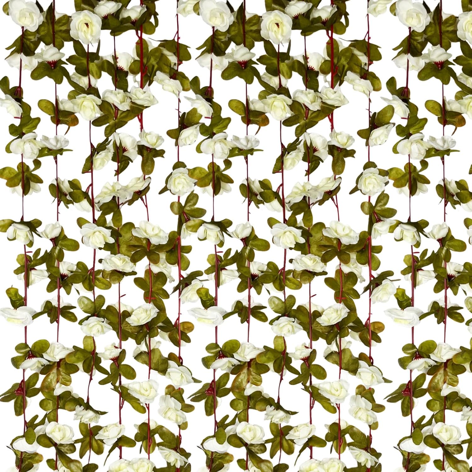 8Pcs 63Ft Cream Rose Garland, Fake Rose Hanging Flowers, Artificial Flower Vine, Hanging Floral Vine Garland for Wedding, Birthday Party, Wall Arch, Halloween, Christmas Garden Backdrop Decor