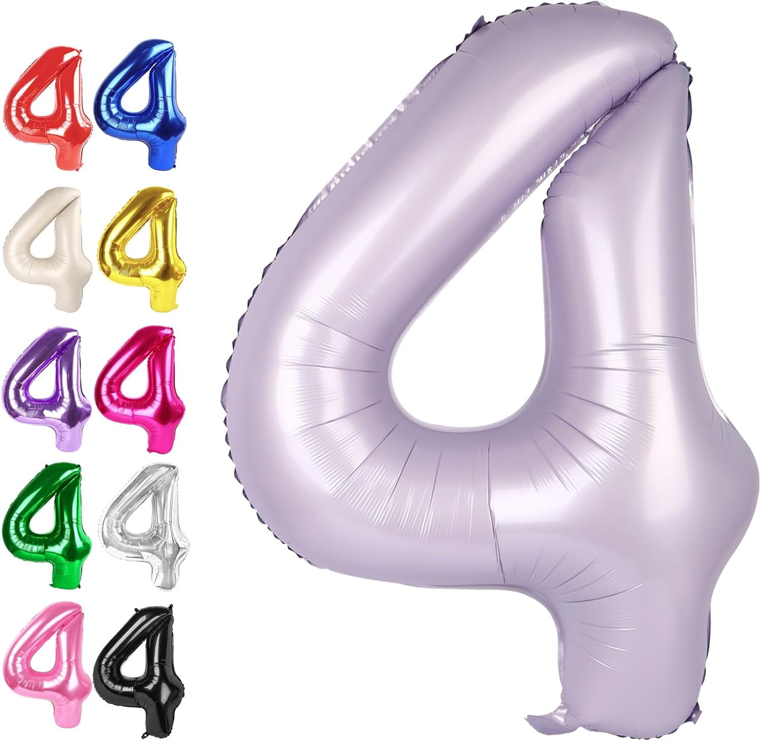 40 Inch Lilac Large Number 4 Balloons, Giant Foil Number Four 14 24 34 40 44 Balloons, Lavender Mylar Big Balloon for Anniversary Graduation Decorations