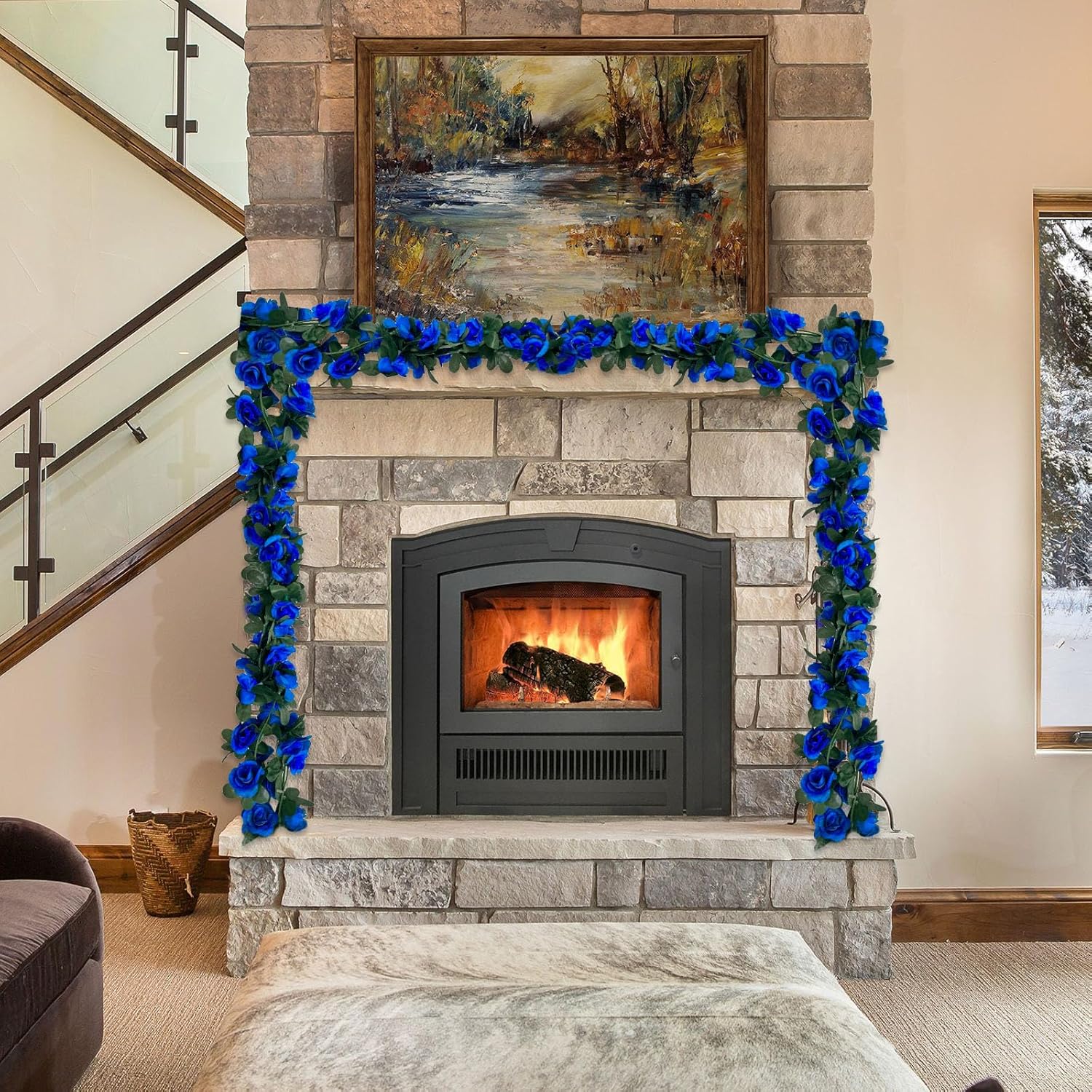 16Pcs 126Ft Royal Blue Rose Garland, Fake Rose Hanging Flowers, Artificial Flower Vine, Hanging Floral Vine Garland for Wedding, Birthday Party, Wall Arch, Halloween, Christmas Garden Backdrop Decor