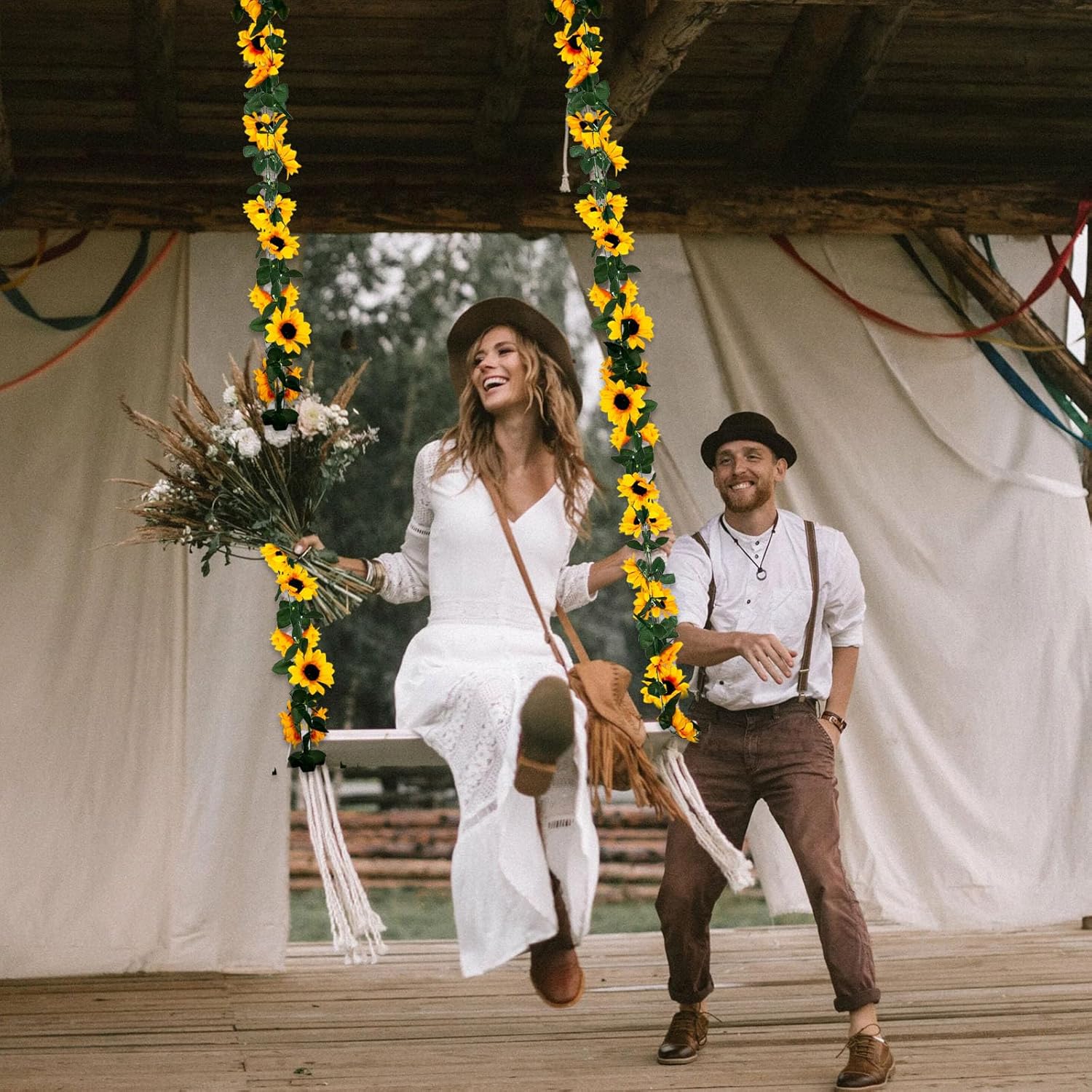 • 【Romantic Decorate】These hanging sunflower garland are lightweight and bendable, and can create a romantic and fairytale atmosphere for your life. Suitable for many scenes such as wedding arch, birthday party, anniversary, Valentine's Day, Halloween, Christmas. It can be used to decorate dinner tables, gardens, fencing, sheds, swing frames, rattan chairs, air-conditioning pipes, exposed wires, stairs, shops, restaurants, offices, etc.