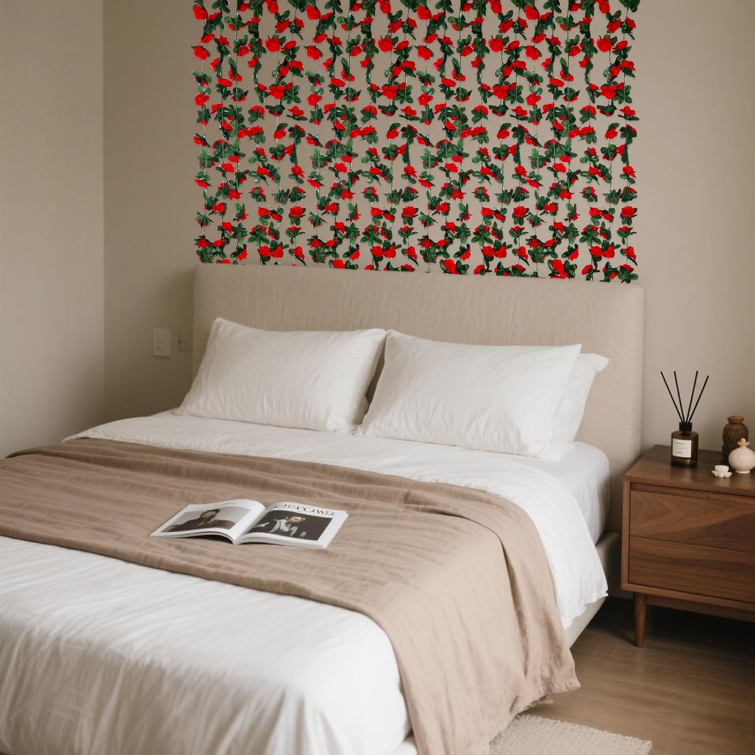 • 【Artificial Rose Garland】Fake rose garland with vibrant colors, perfect for creating a dreamy atmosphere. They could also decorate your space with the string lights. Adding more romantic and full-of-life atmosphere to you all.