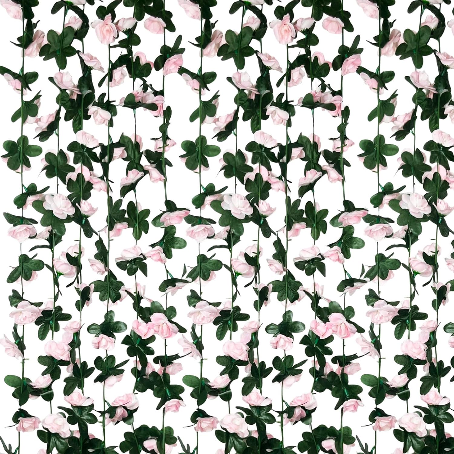 8Pcs 63Ft Light Pink Rose Garland, Fake Rose Hanging Flowers, Artificial Flower Vine, Hanging Floral Vine Garland for Wedding, Birthday Party, Wall Arch, Halloween, Christmas Garden Backdrop Decor