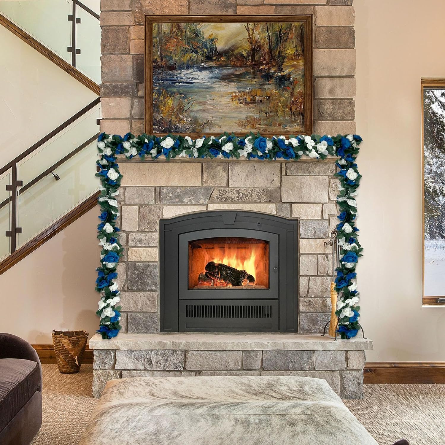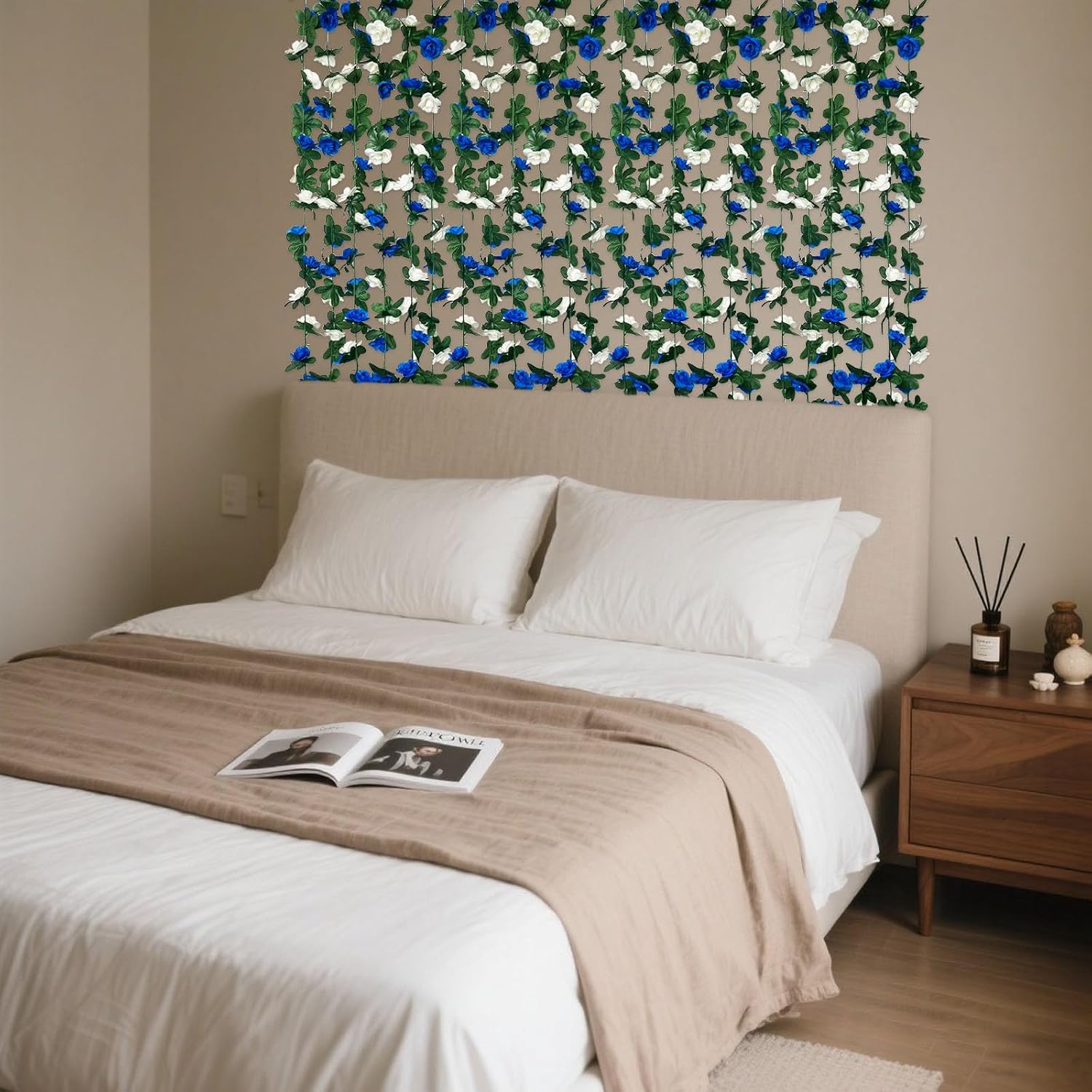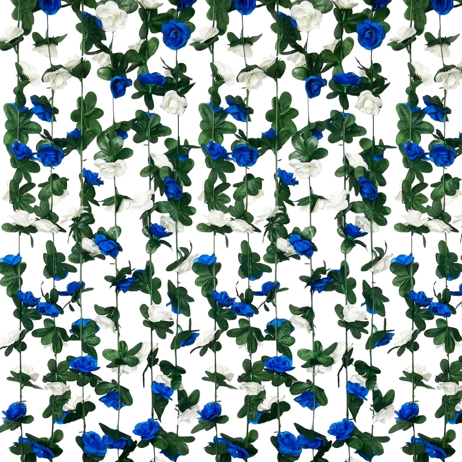 16Pcs 126Ft Royal Blue&White Rose Garland, Fake Rose Hanging Flowers, Artificial Flower Vine, Hanging Floral Vine Garland for Wedding, Wall Arch, Halloween, Christmas Garden Backdrop Decor