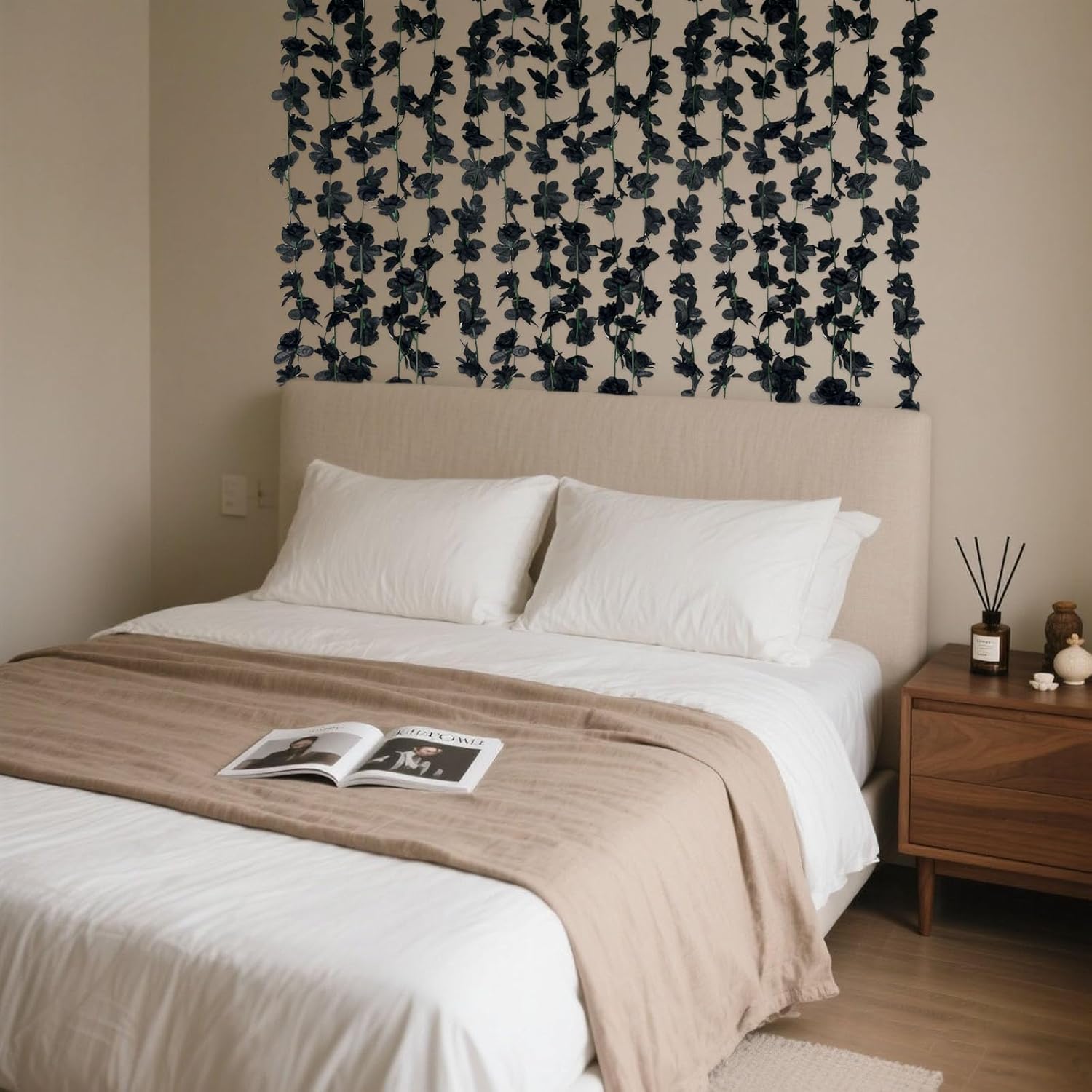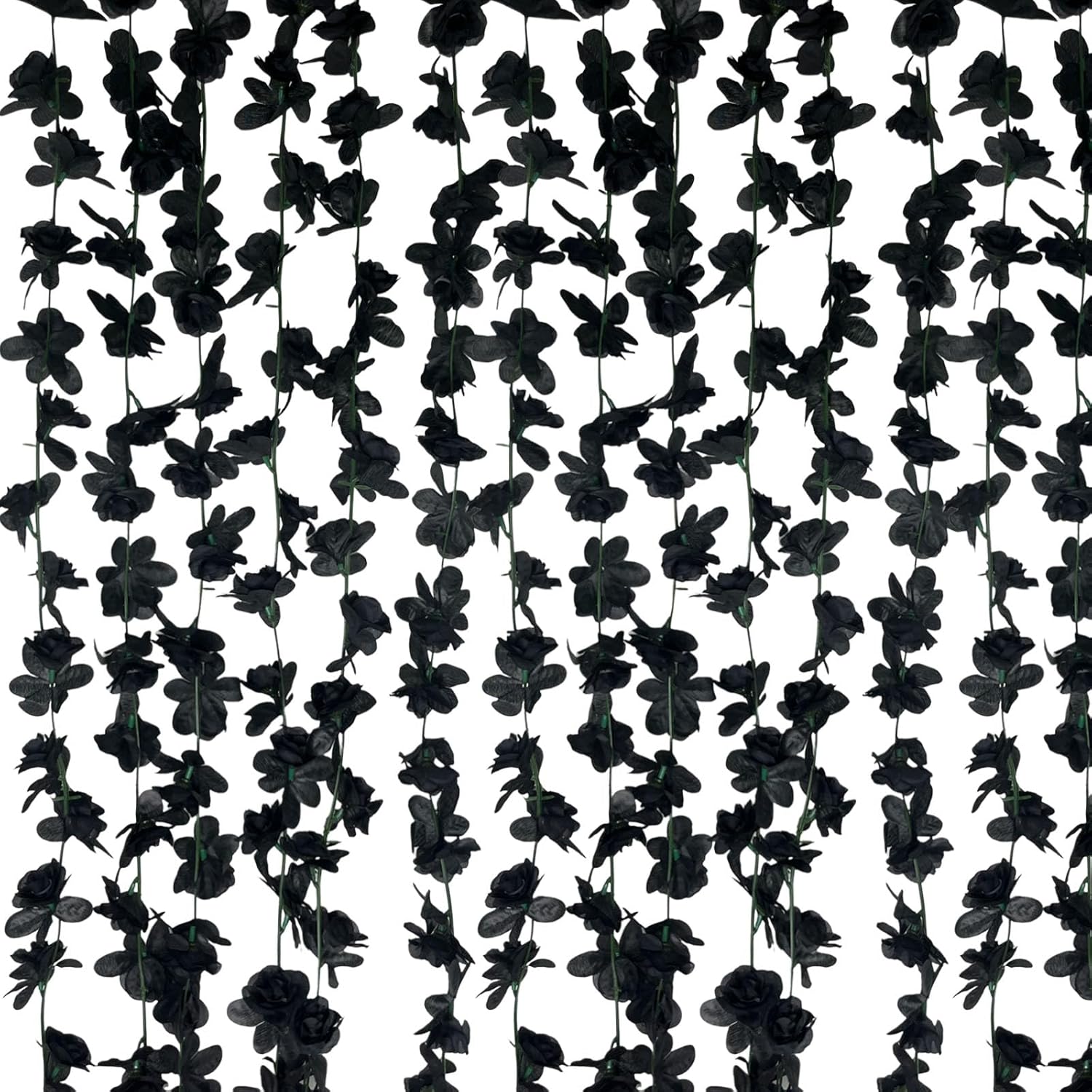 8Pcs 63Ft Black Rose Garland, Fake Rose Hanging Flowers, Artificial Flower Vine, Hanging Floral Vine Garland for Wedding, Birthday Party, Wall Arch, Halloween, Christmas Garden Backdrop Decor