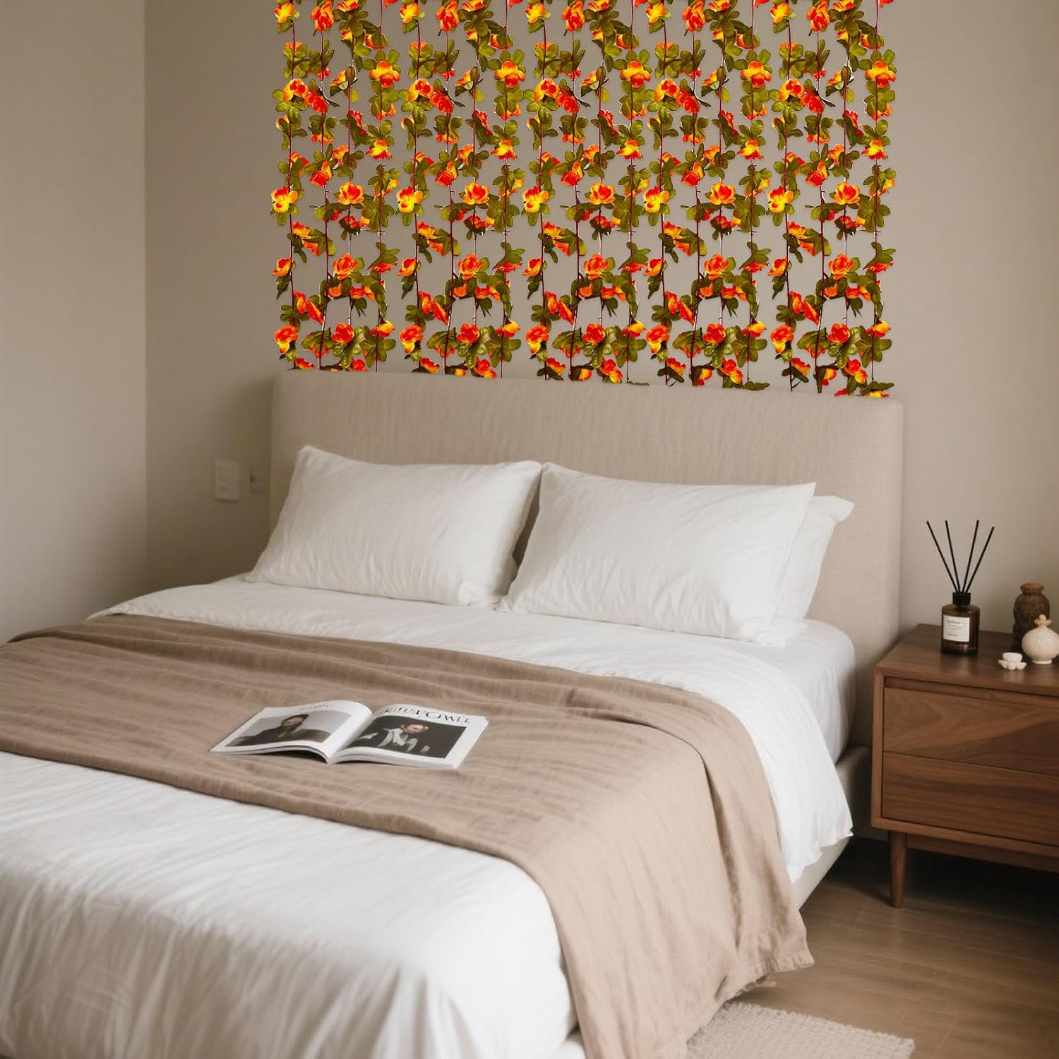 8Pcs 63Ft Orange Rose Garland, Fake Rose Hanging Flowers, Artificial Flower Vine, Hanging Floral Vine Garland for Wedding, Birthday Party, Wall Arch, Halloween, Christmas Garden Backdrop Decor