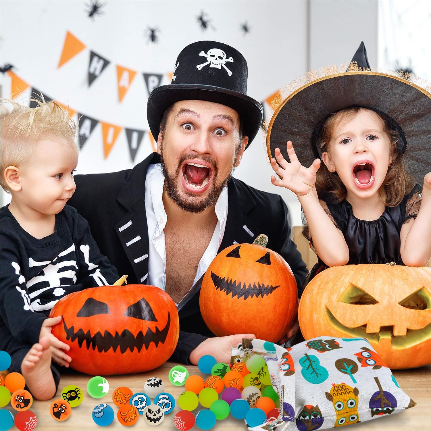 • Halloween Party Favors for Kids:The Glow-in-the-Dark Bounce Balls included 200 pcs 28 mm Rubber Bright Glowing Bouncing Balls 10 Assorted Halloween Designs, kids will love this Halloween gift even more than candy. The perfect size is friendly for little hands.It also glows in the dark, adding a spooky atmosphere to Halloween. Come with a pouch bag for easy storage, which can help improve children's life organization skills.Believe Kids will love perfect Halloween toys assortment.