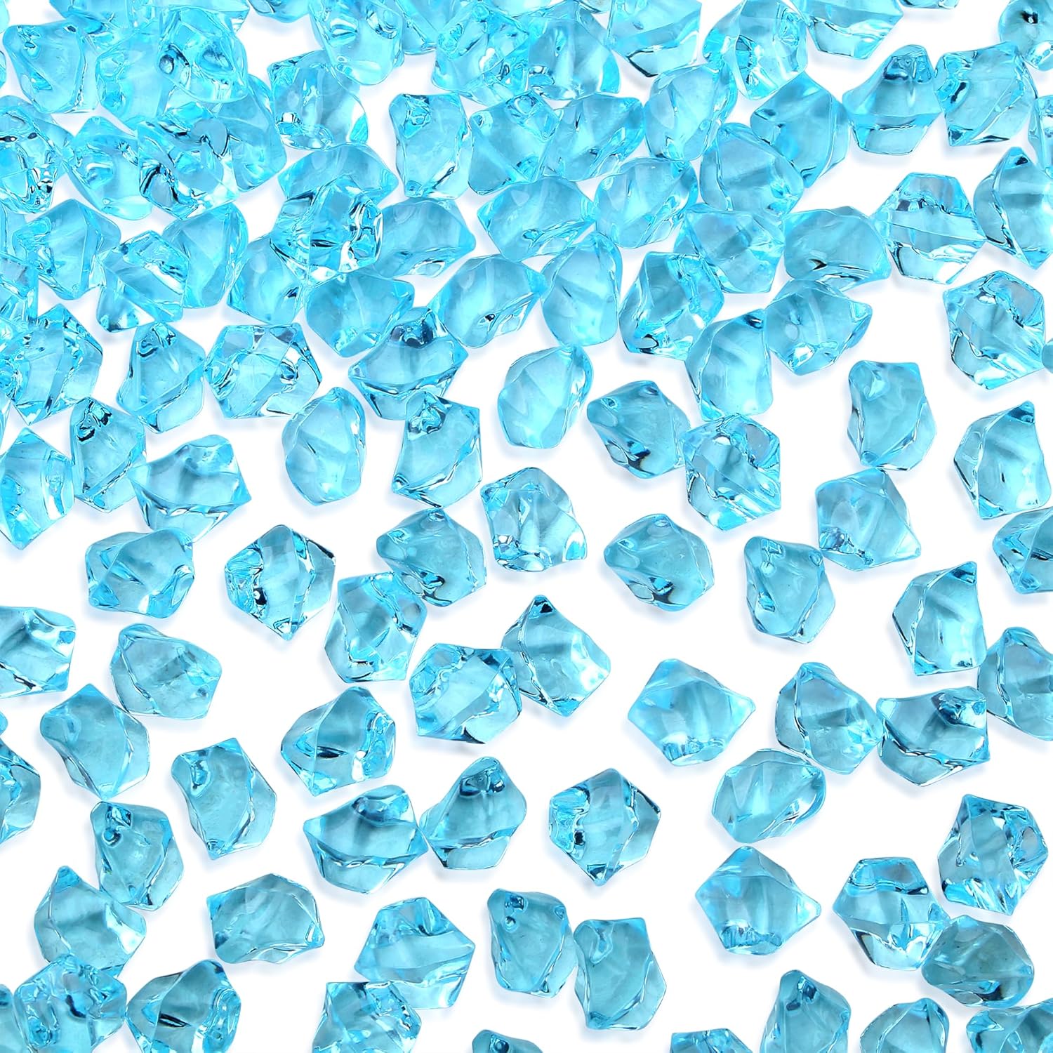 YATOJUZI 500pcs Fake Ice Cubes Aqua Blue Acrylic Crushed Rocks Vase Fillers Plastic Diamonds Gems for DIY Party Wedding Centerpiece Table Scatter Prop Display 0.5" (Only Aqua Blue)