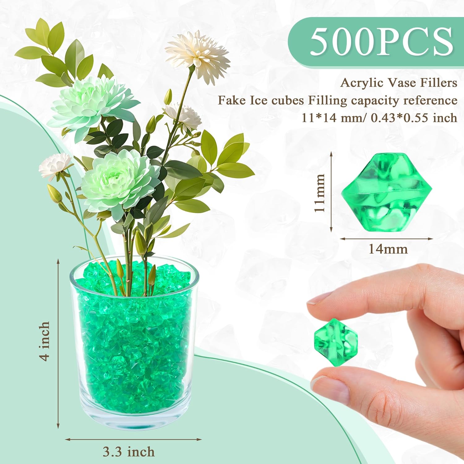 YATOJUZI 500pcs Fake Ice Cubes Seagreen Acrylic Crushed Rocks Green Vase Fillers Plastic Diamonds Gems for DIY Party Wedding Centerpiece Table Scatter Prop Display 0.5" (Only Seagreen)