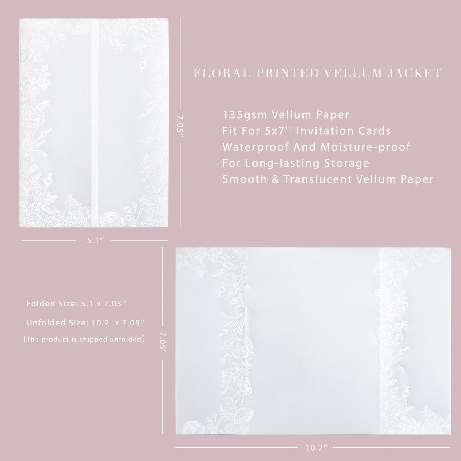• 【What's Included】: A bulk quantity of 50 wild floral 5x7 vellum jackets