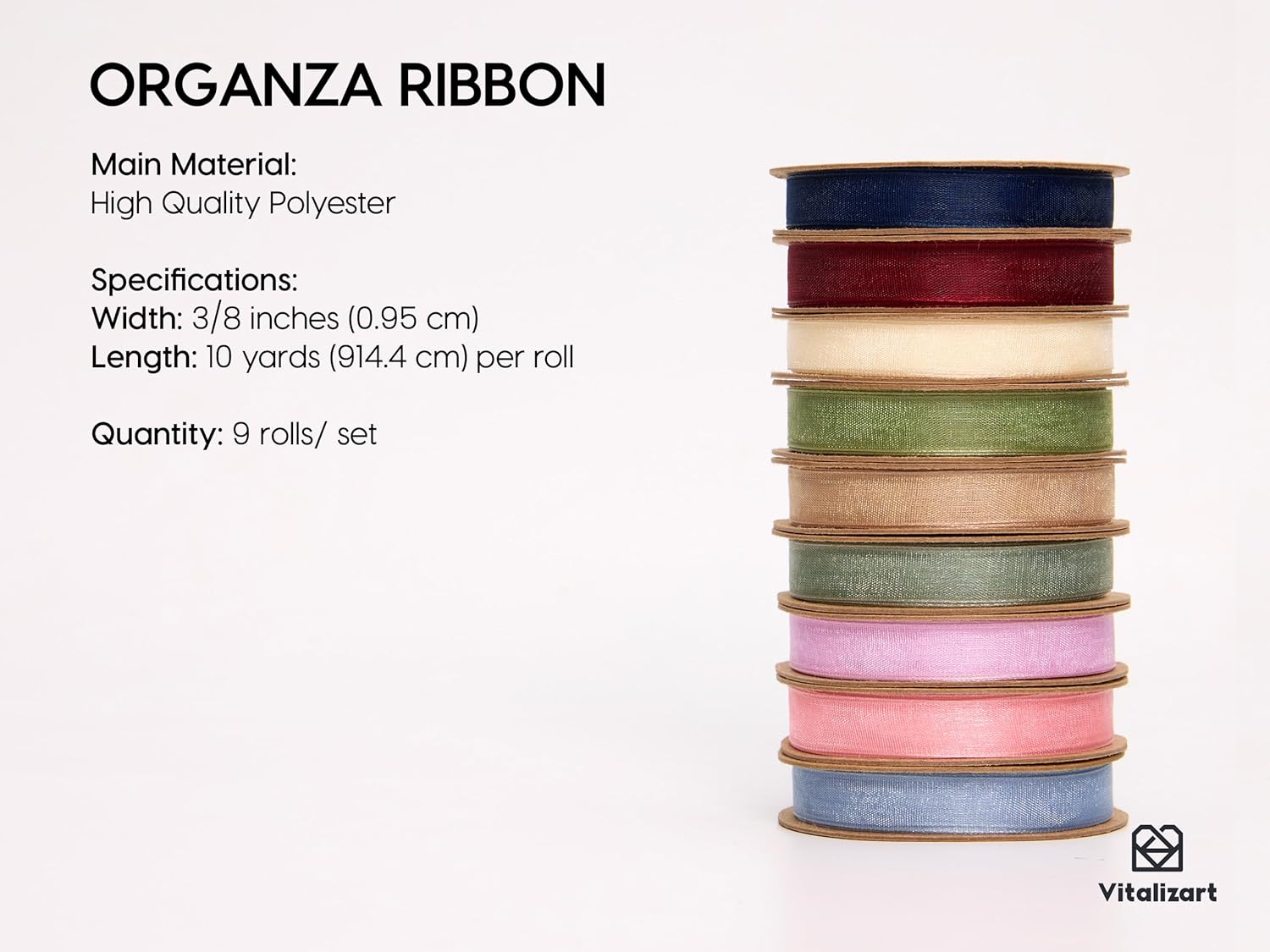 Vitalizart 3/8" x 90 Yards Organza Ribbon Pastel Color 9 Rolls x 10 Yd Sheer Ribbon for Gift Wrapping Crafts Christmas Tree Bows Wedding Invitations Wreaths Party Decor Bouquet DIY Projects