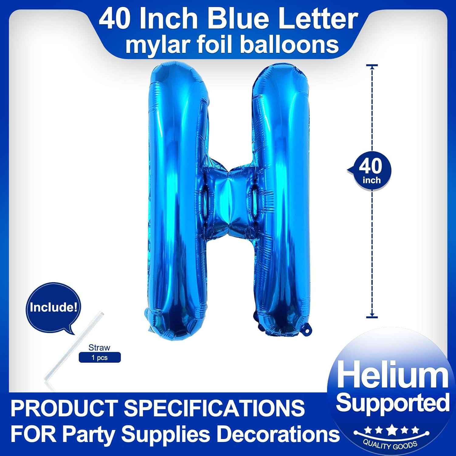 • Package included:One Blue Letter H Balloon*1,straw*1,40 inch Blue letter balloon