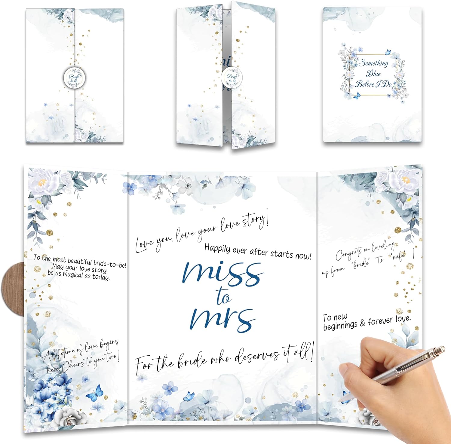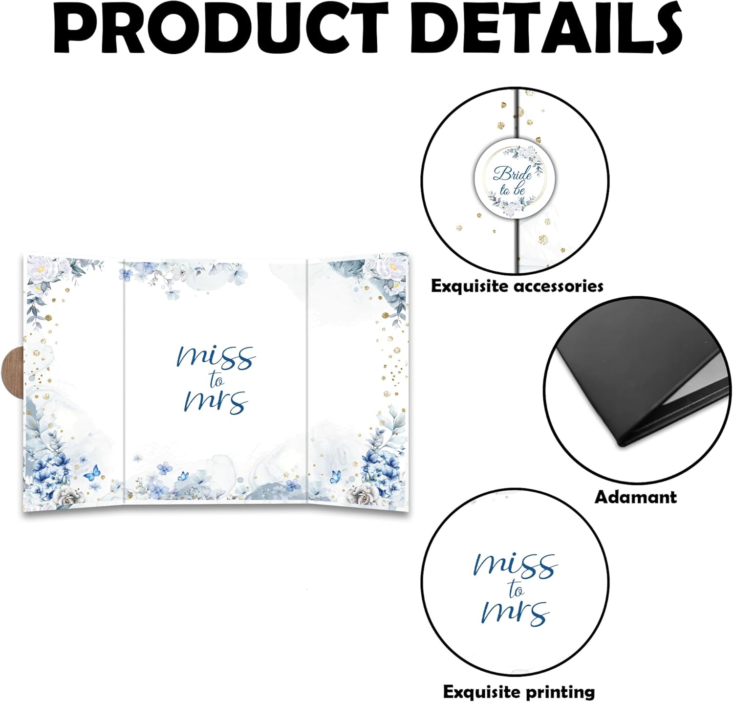 Blue Flowers Bridal Shower Decorations - 18 ''x12'' Bride-to-Be Signature Guest Book Alternative from Miss to Mrs - Signature Book Gifts - Bachelorette Party Wedding Reception Decor & Supplies -A08
