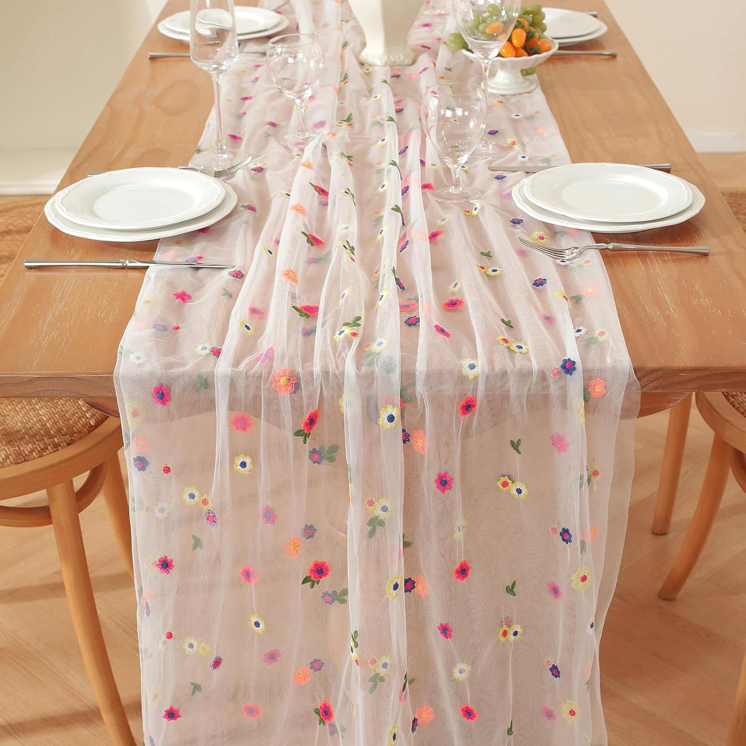 • Delicate Embroidery Daisy Design:This is a flower embroidered table runner. Daisy design and solid champagne gauze combination of both retains a sense of simplicity and add some full of life feeling