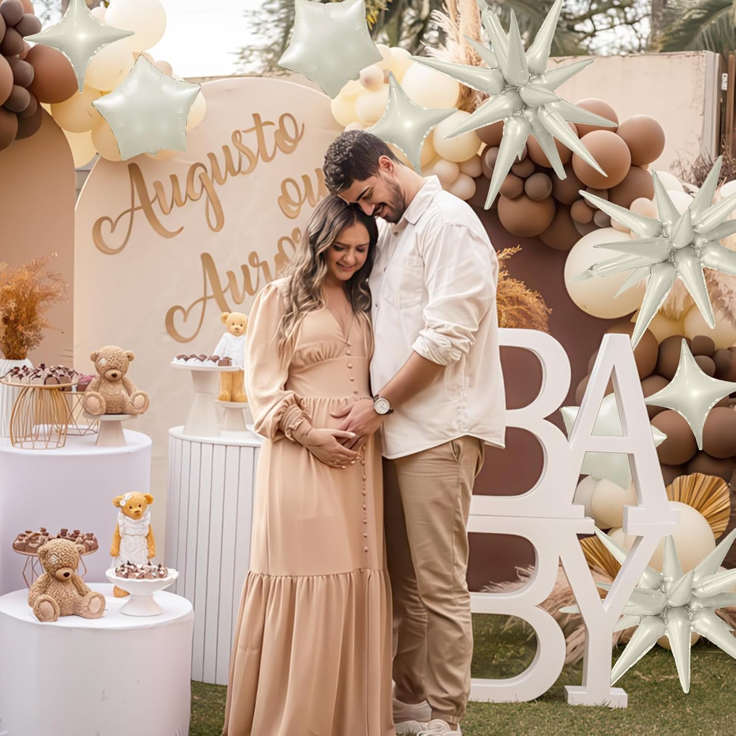 Cream Star Balloons, 22in White Sand Star Balloons Foil 10in 4-Pointed & Ivory Pentagram Balloon for Baby Shower Wedding Boho Themed Birthday Party Decorations
