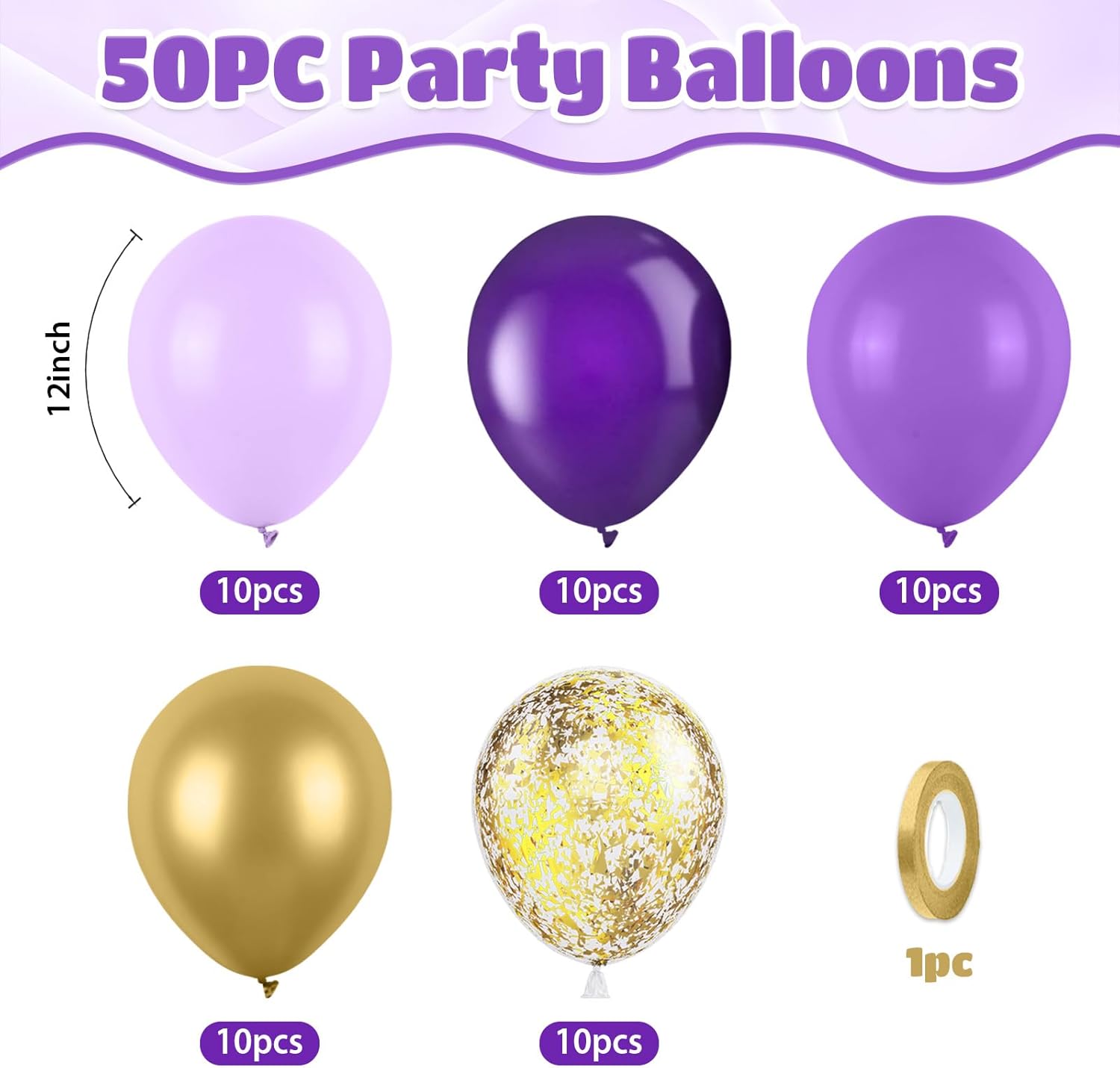 • Easy to Assemble: These purple and gold party balloons inflate easily and can be arranged into arches, garlands, or table centerpieces with minimal effort. The included ribbon allows for simple tying, stringing, or hanging—no complicated tools or professional skills needed. Great for party planners or DIY decorators alike who want results without a fuss.
